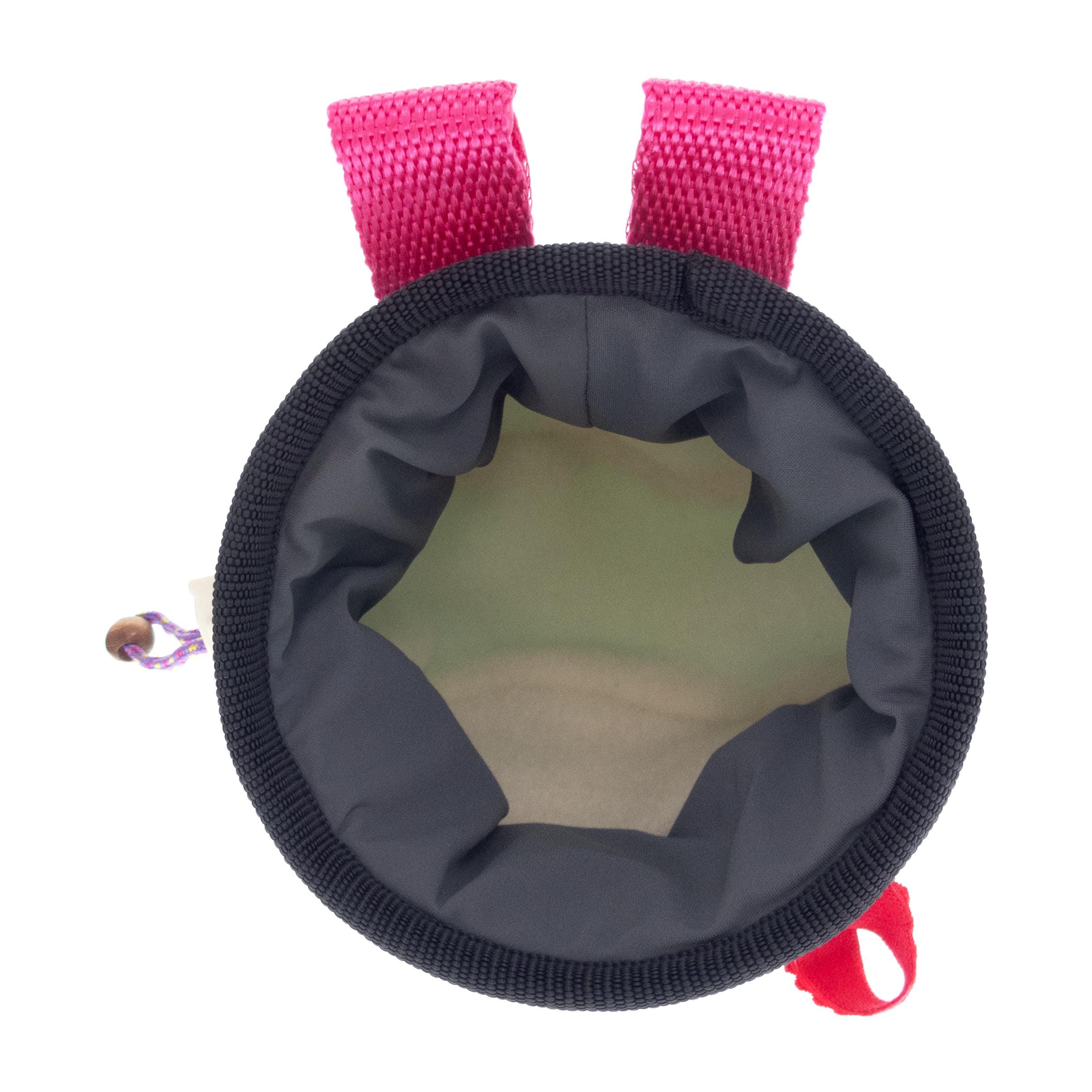 * Two pink loops for attaching the chalk bag to the climbing harness or to the webbing strap