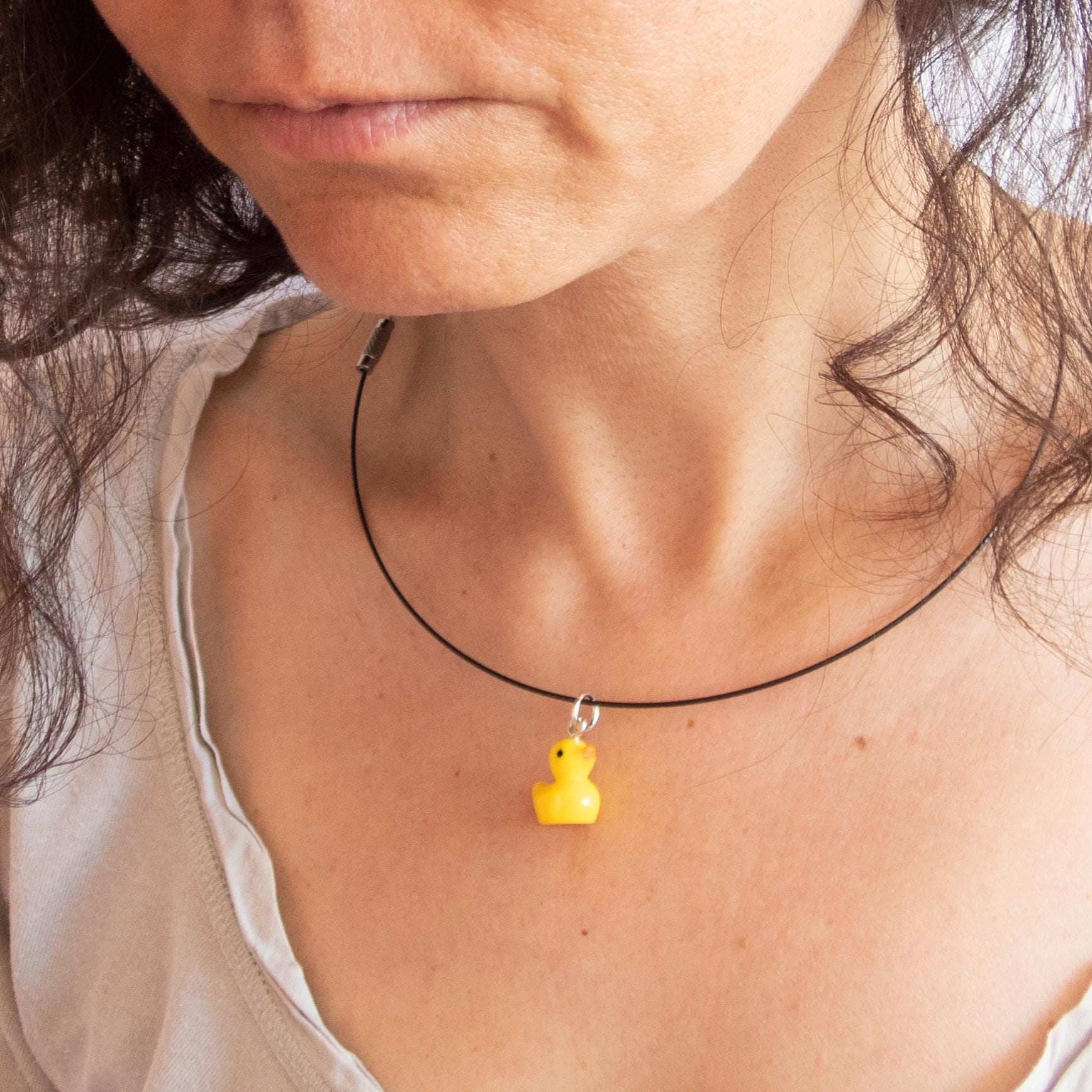 This is Ladies Charm Necklace with cute mini yellow rubber duckie pendant. It is the best seller in Nadamlada's women's jewelry with rubber ducks. Beach themed, you can wear it when you travel, because it is waterproof, lightweight and unique. The yellow rubber ducks are associated with luck and protection. It is believed that wearing a lucky necklace with duck charm, you will be ward off negative energy, it brings good fortune, and protects the wearer from harm. The rubber ducks are a symbol or debugging technique in programming. So, every programming women will love this necklace. Designed by Nadamlada with a fun and playful aesthetic, incorporating a popular childhood icon into a stylish accessory for adults.