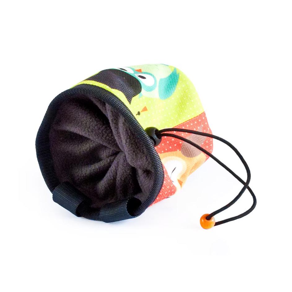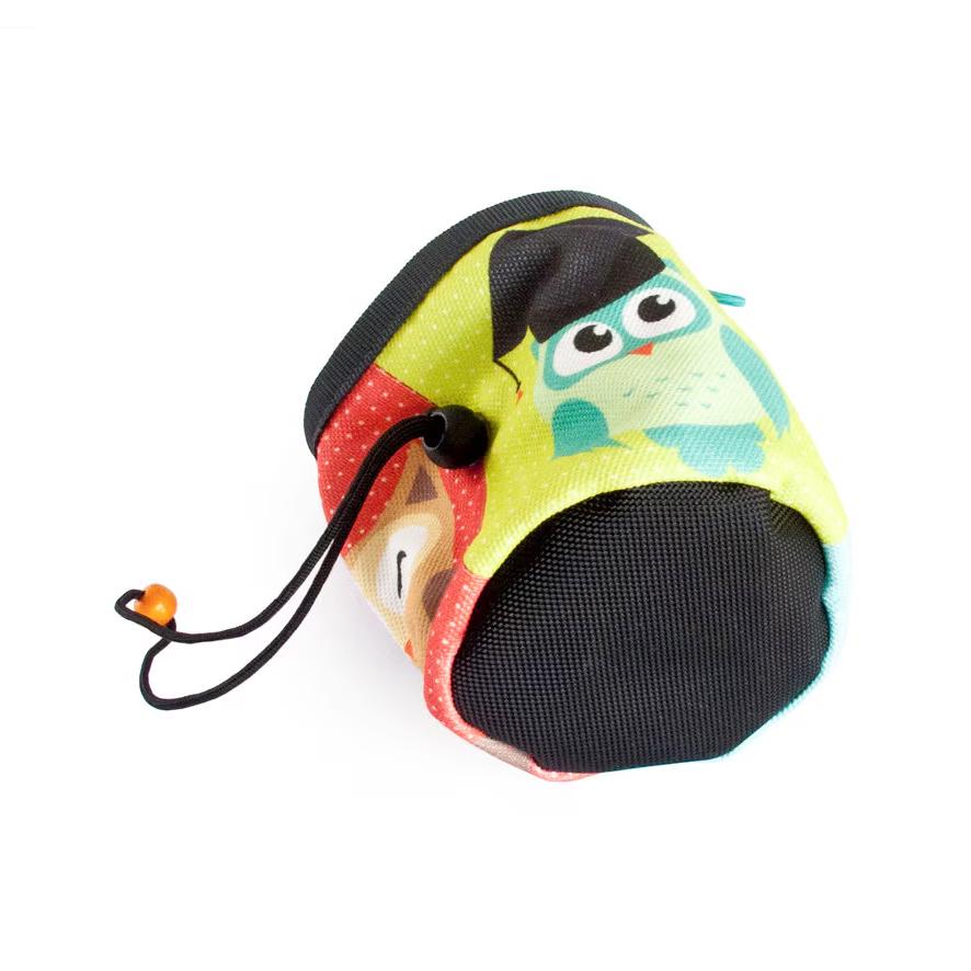 Chalk bag climbing gear, best as handmade rock climbing gift for any rock climber. This chalkbag is sewn of fabric with owls. Under the outer layer with the animals we attached a membrane layer, that keeps the chalk inside. The next inner layer is fleece in grey color. The chalk bag is with 2 attaching loops. It closes tight. The upper stays wide opened, because of the webbing, sewn to the top. The black bottom is durable and keeps the shape of the chalk bags with owls always in good condition. If you order, you will receive the chalkbag bouldering and climbing purse from the pictures. It one of our best suggestions for rock climbing gifts for climbers. It can be used for sport climbing, trad climb, at the gym, everywhere.