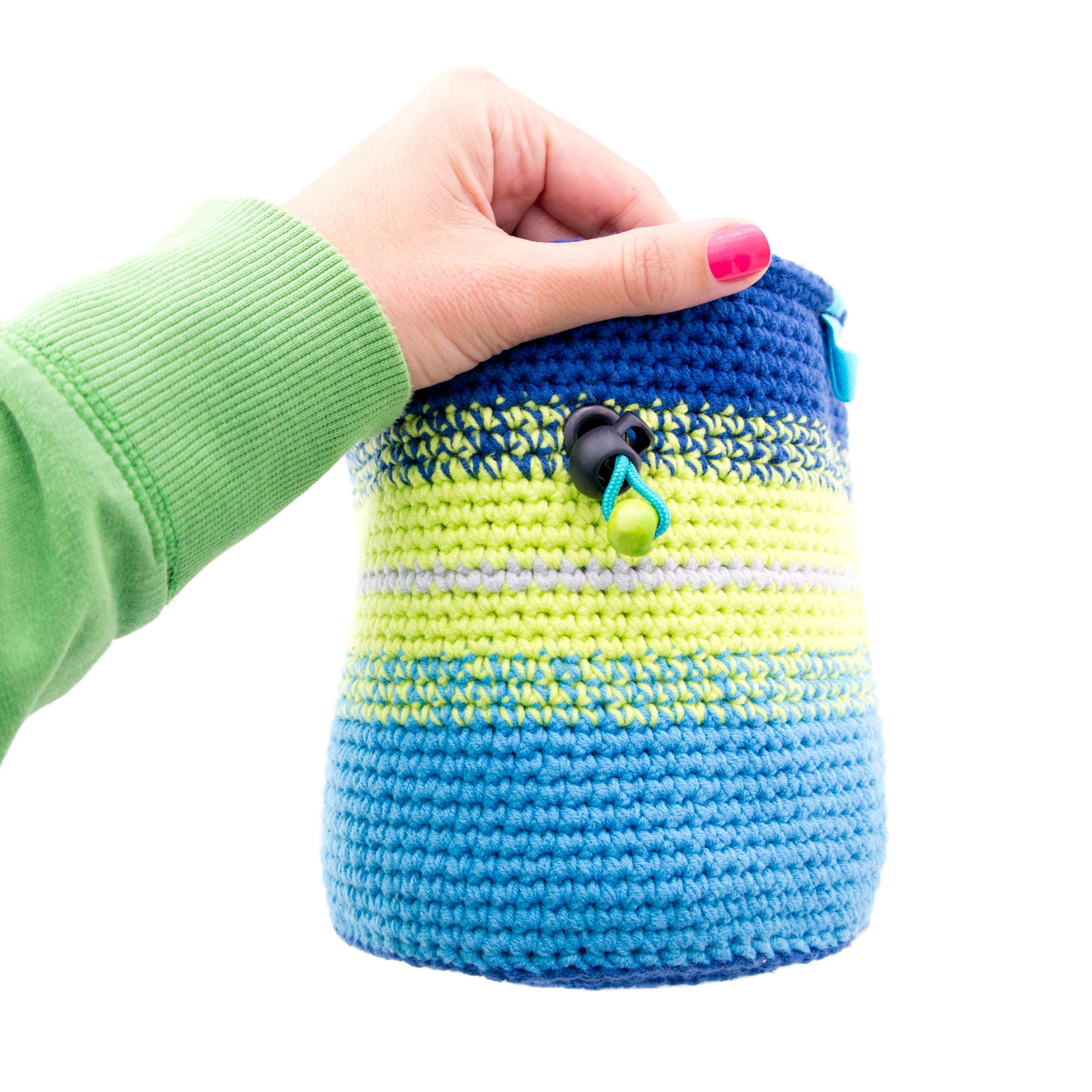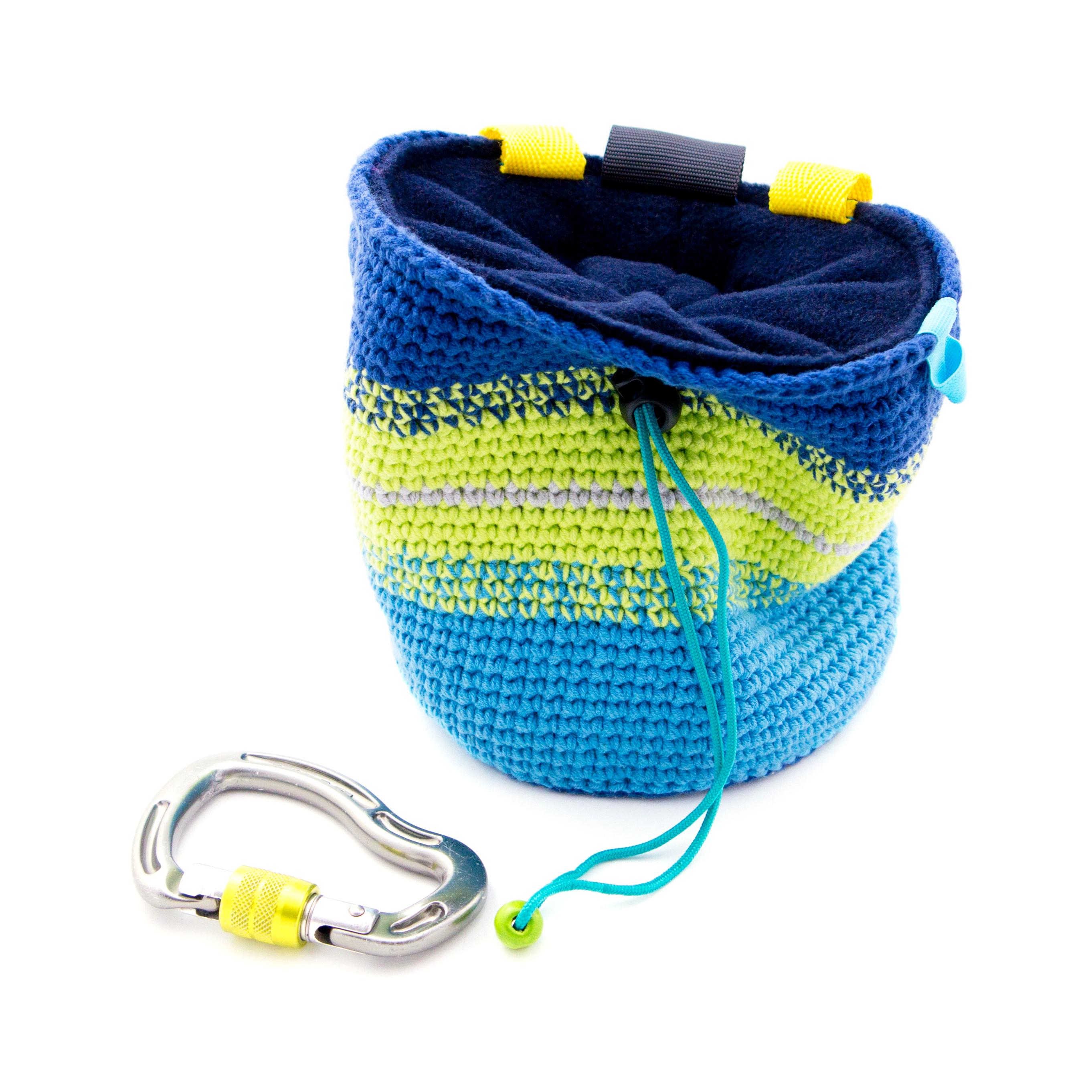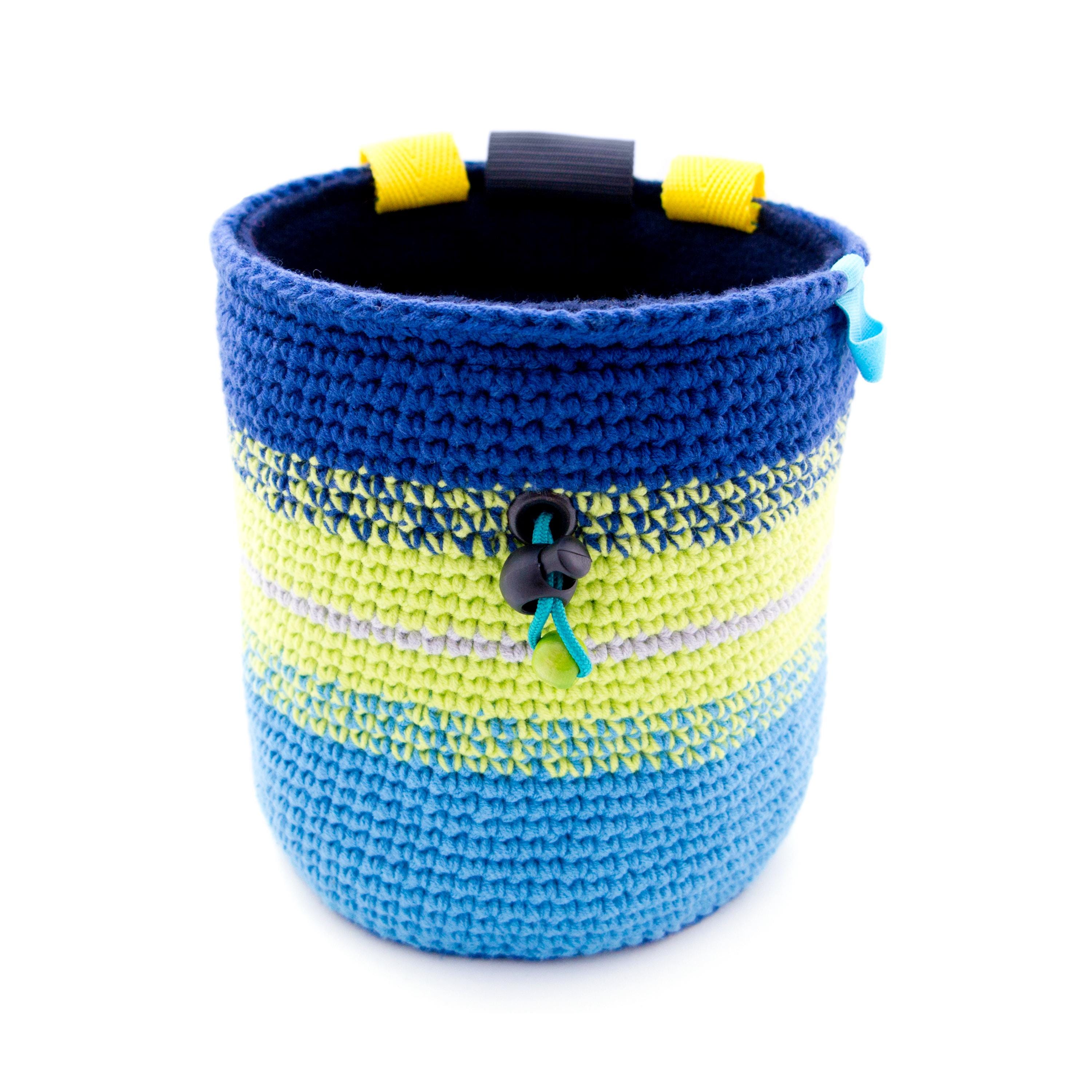 This is handmade extra extra large chalk bag, best for Bouldering Gifts for any rock climbing addict. It is nice for men and women, girls and boys, who wish to have lots of chalk with them. With its super big size, this chalk bucket can be used for indoor climbing gym, when you are bouldering or climbing on a rocks. We handmade it knitted of cotton yarn. The upper rib stays wide opened. With elastic brush holder. This biggest chalk bag that we crochet.