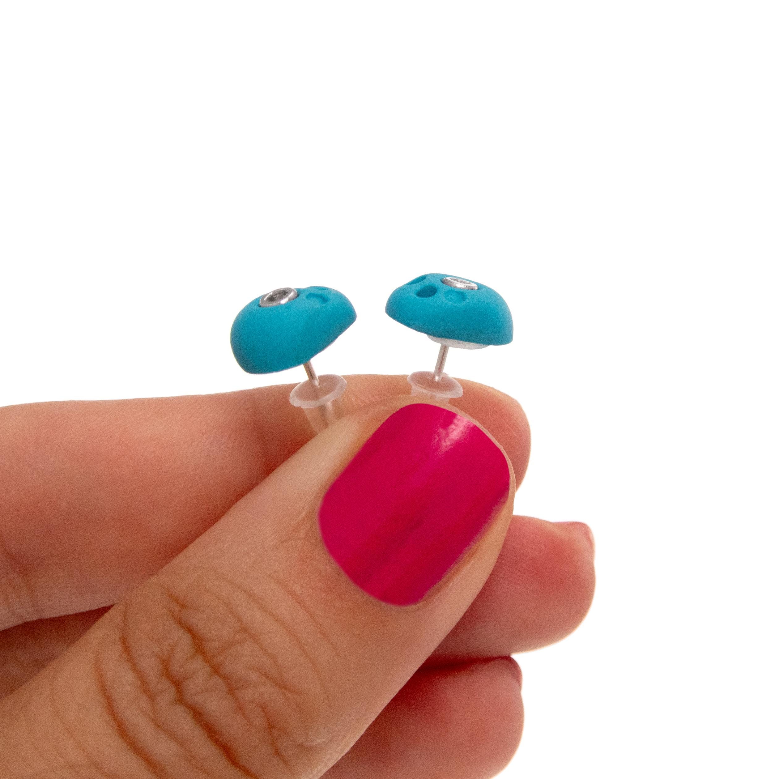 Handmade, unique, sexy! Yes, these are our out and Indoor Bouldering Earrings, created by Nadamlada as miniature rock climbing holds crimps earrings. These wall climb jewelry studs are best bouldering gift idea for any rock climber, having all rock climbing gear and equipment needed. Use them not just as bouldering gym accessories. We handmade them to complement any style. These earrings are perfect for both men and women who embrace the thrill of extreme sports. Created of polymer clay with steel bolts in the middle, 2 mini holes and one hexagon stamp. These indoor bouldering earrings are sure to catch the eye and spark interesting conversations about climbing.