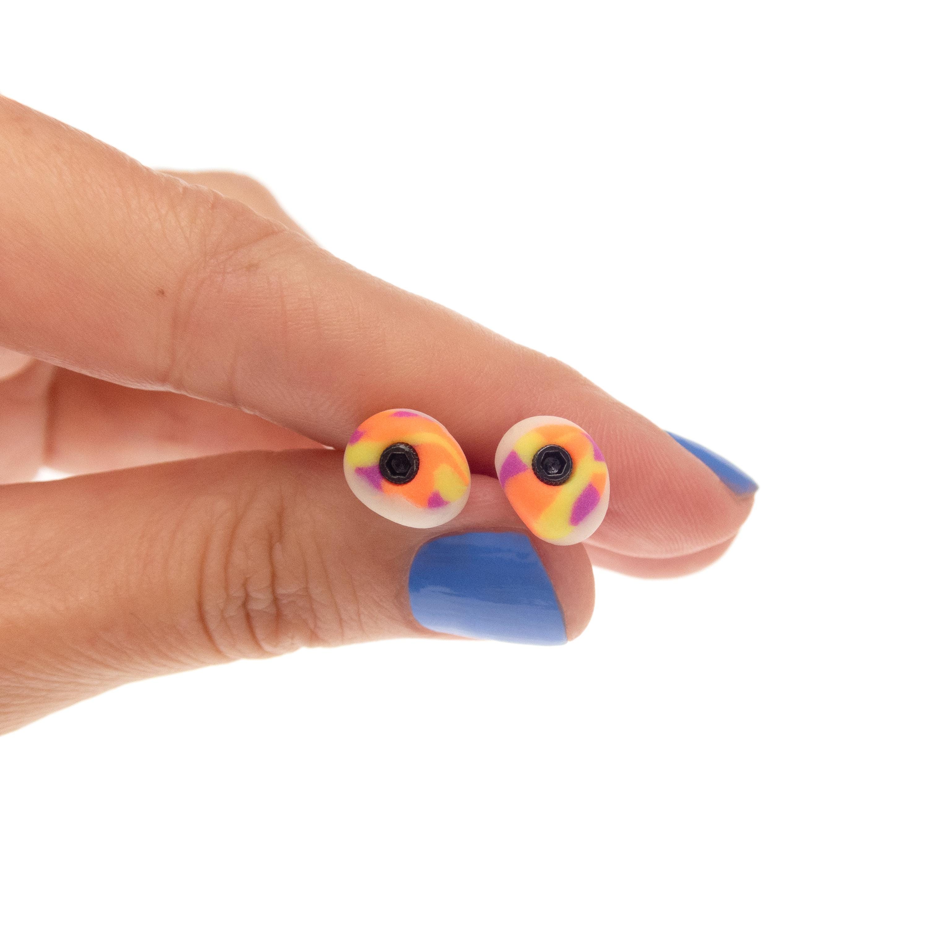* The colors of the main pictured neon Studs Earrings in mini holds shape are neon orange, neon yellow, neon purple and fluorescent white