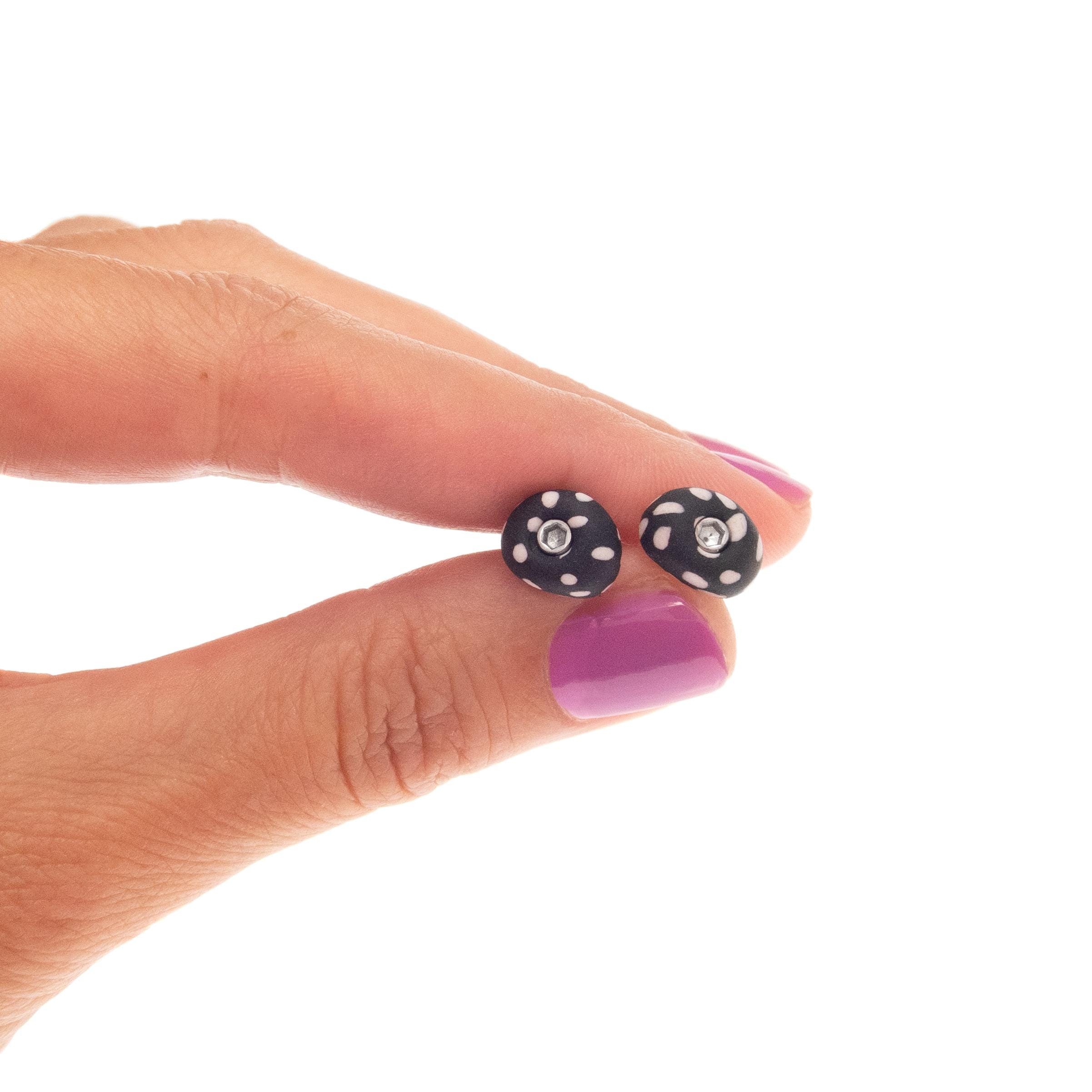 Are you looking for Gifts for A Boulderer? These Rock Climbing Holds Earrings Studs are handmade especially for climb enthusiasts, who are in love with the sport. These mini boulder holds earrings are nice present idea for a boyfriend or girlfriend, friend or family member. Best for climbers birthday gift idea too. Nadamlada handmade these earrings in the shape of miniature rock climbing holds, created of polymer clay. They are with mini steel bolts in the middle. Lightweight, funky and stylish, they are suitable for a junior or an adult climbers too. Use them as a present to help the recipient feel more connected to the community of rock climbers. These climb wall holds earrings are a signal to others that the wearer is a climber, fostering a sense of belonging and unity.