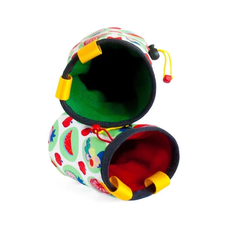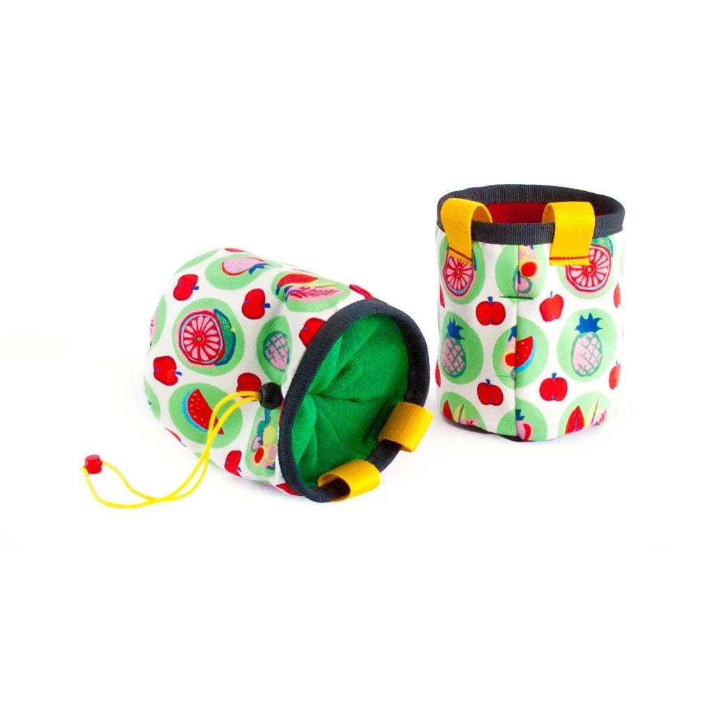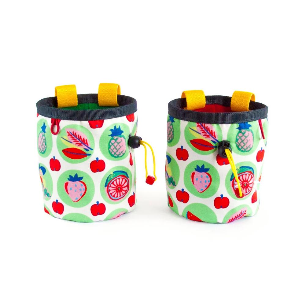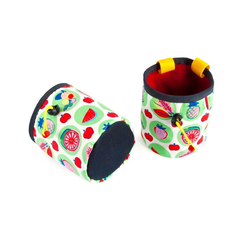 Cool Chalk Pouch Chalkbag, handmade as climb pot chalk bag for bouldering and rock climbing. This chalk bucket can be used of climbers: men or women. It is universal. We sew it of durable fabric, fruits and vegetarian themed. You can choose among green or red inner. This bag It is our suggestion for a rock climbing gifts, created with love and imagination.