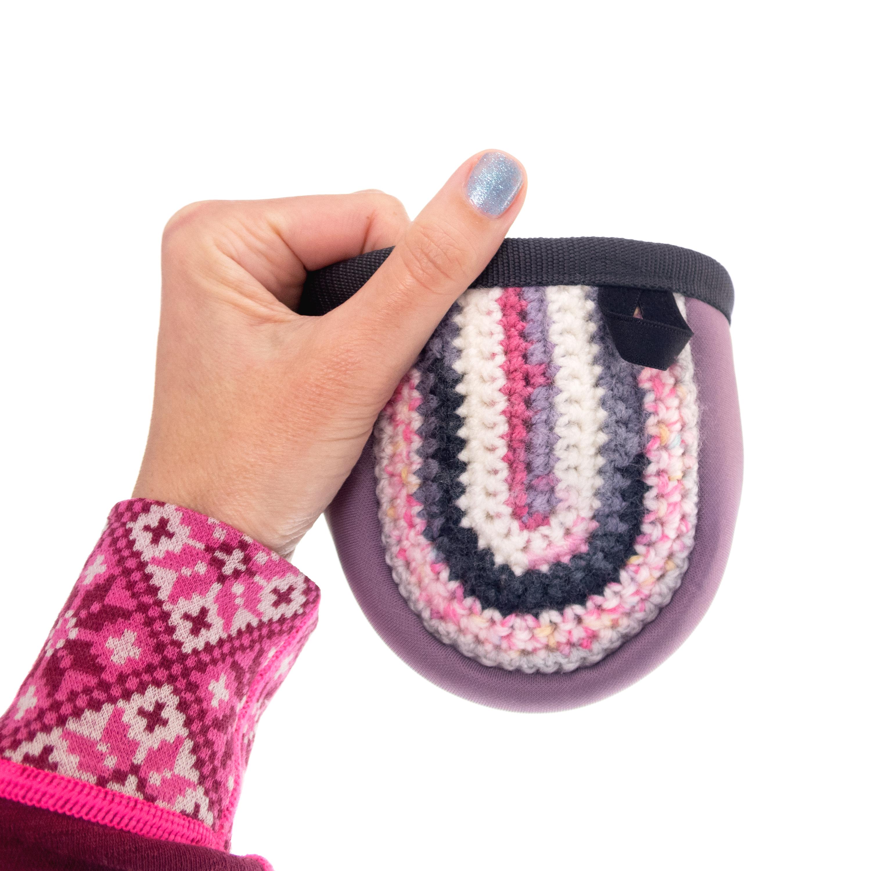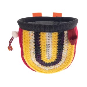 Handmade Children's Chalk Bag for Climbing and Bouldering. This is climb gear, created for sport or trad and rock climbing. Nadamlada designed this chalk bag for kids as pink mini chalk pouch of neoprene. Its accent is the front, hand crochet in striped pattern. It is small, but with full functionality as the chalk bags for adults. It is created as easy-to-use from the little climbers. Closes well with a bear buckle. Only one available.