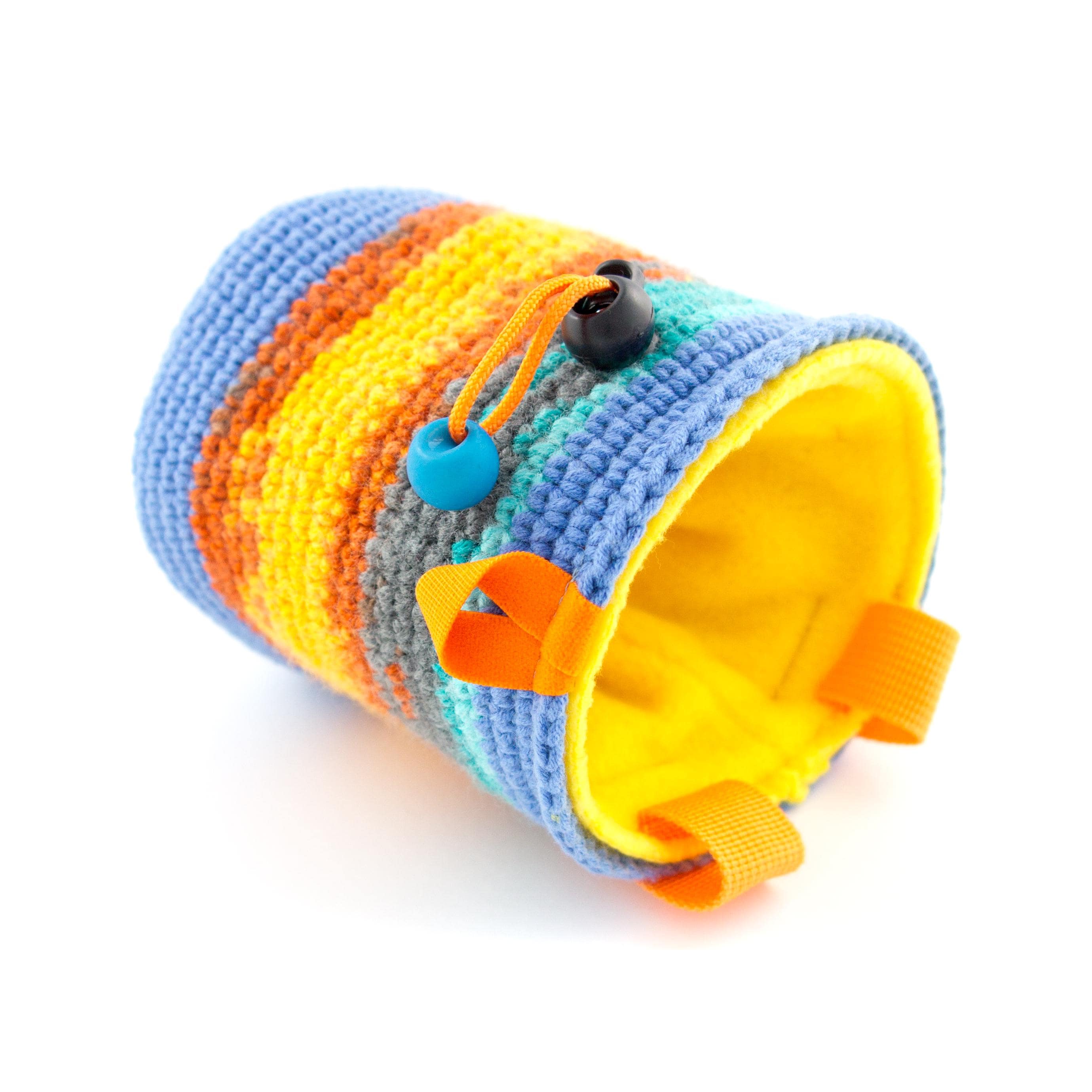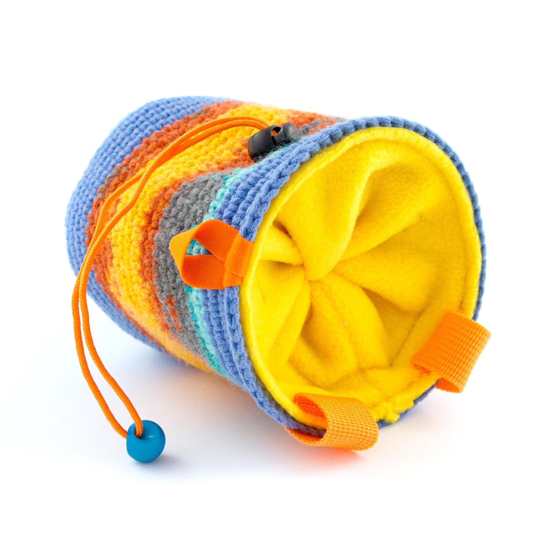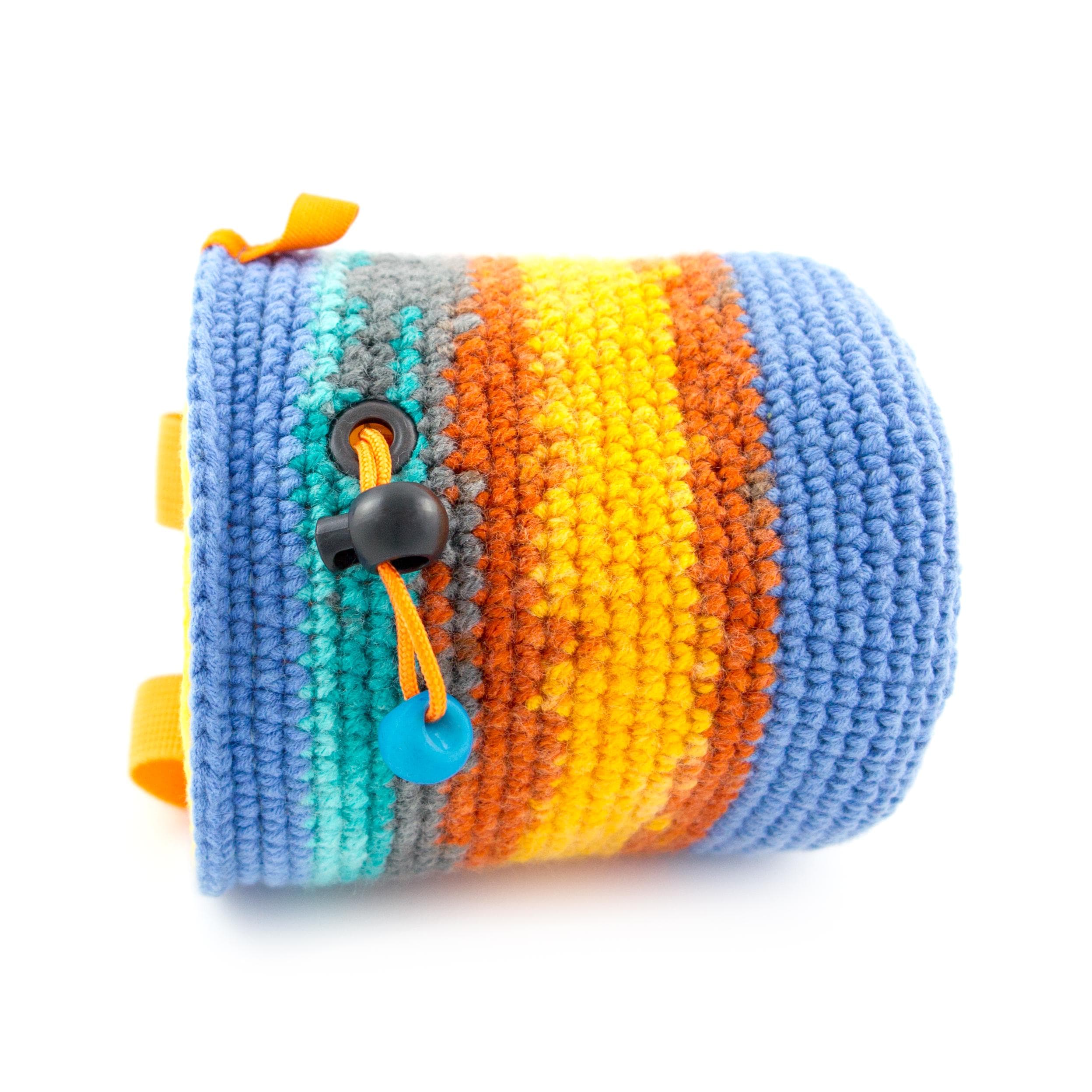 Are you wondering what is the Best Climbing Gift for a rock climber or boulderer? This handmade chalk bag is cool present idea for any climb addict, for her and him, for girls and boys, couples also. It is large enough to be comfortably used of men and women. We hand made crochet (knitted) the outer layer of the chalk bag. The upper part stays wide opened. The chalk bag is with elastic brush holder and 2 loops for attaching it. The chalk bag can be purchased wrapped as a gift, and is possible to include a gift message. Only one available.