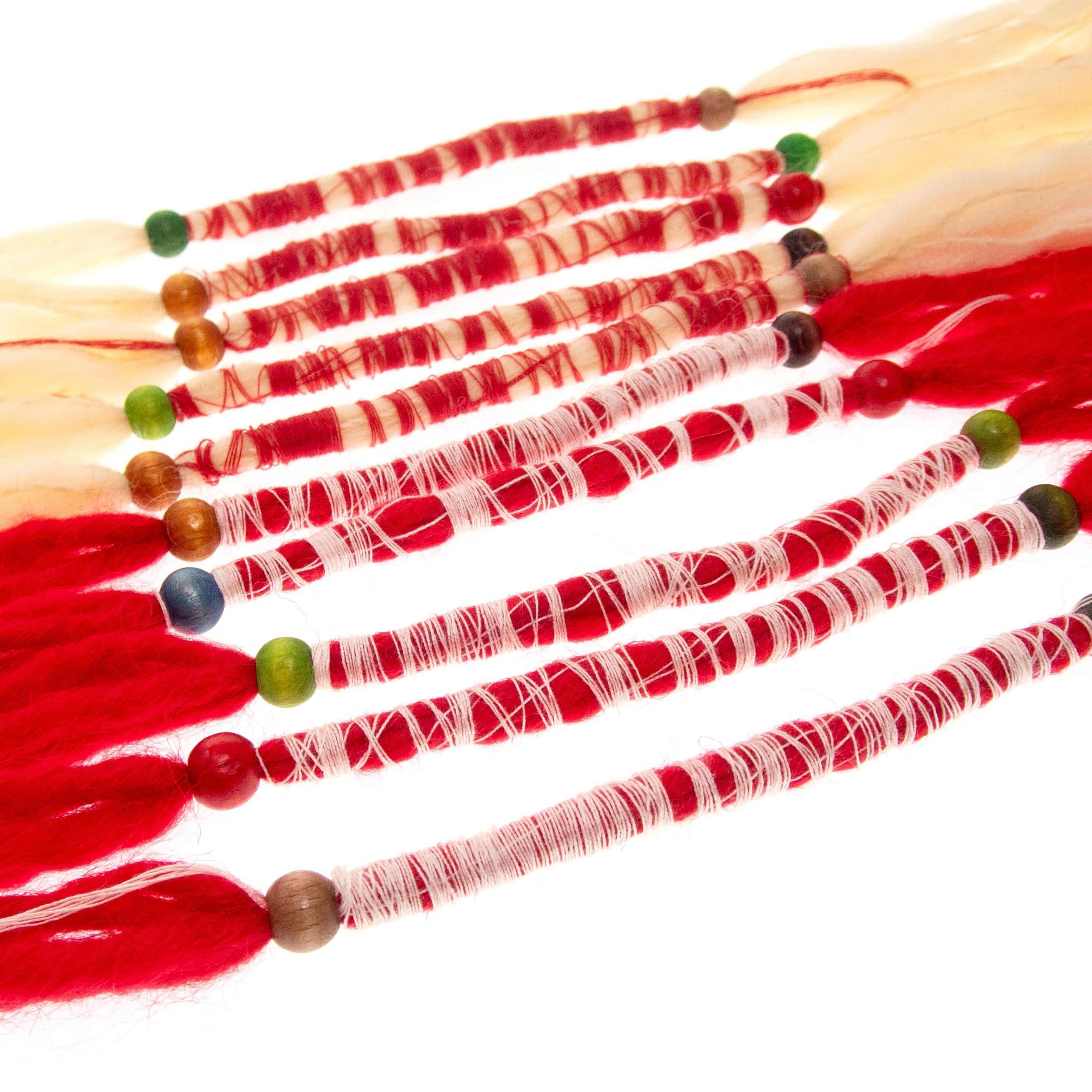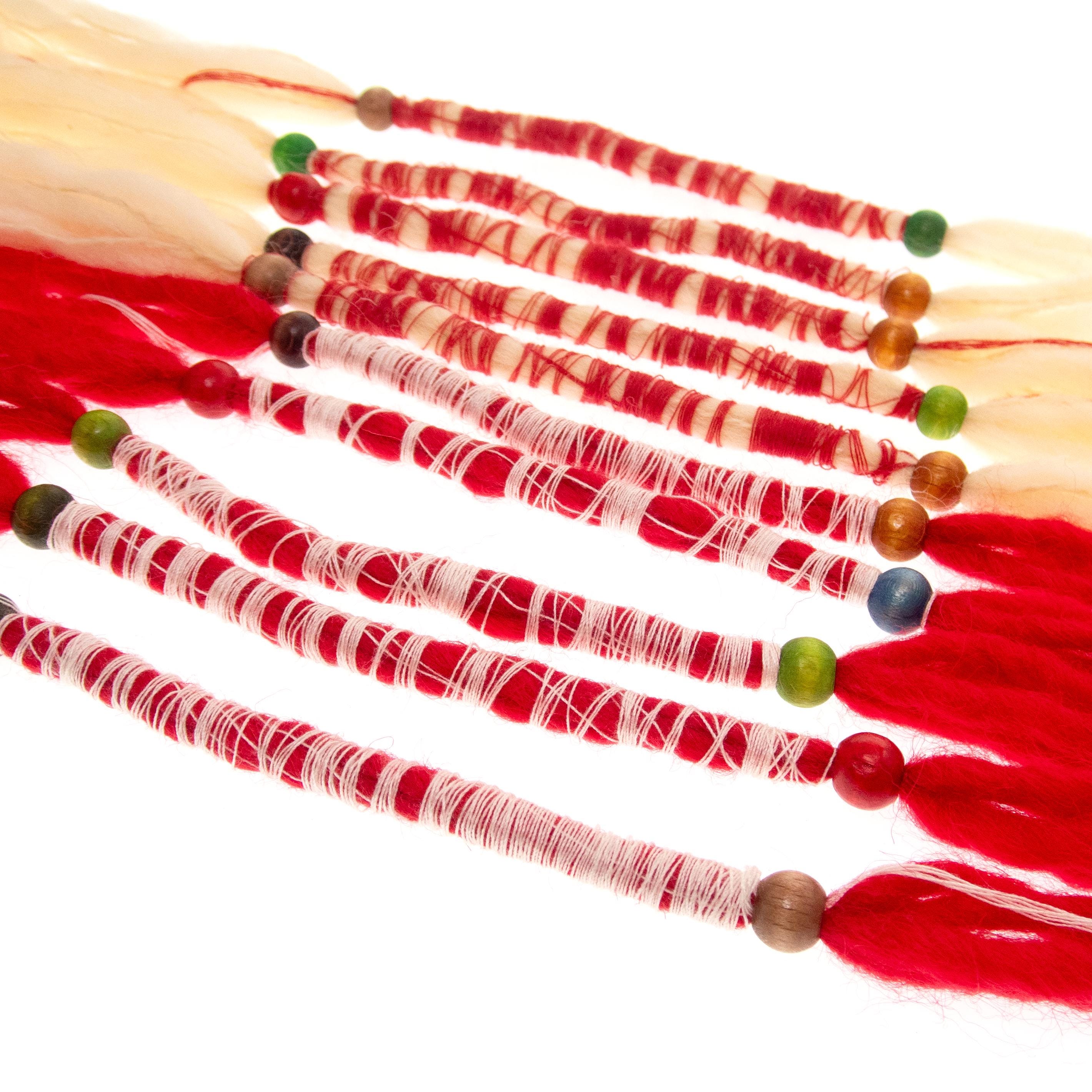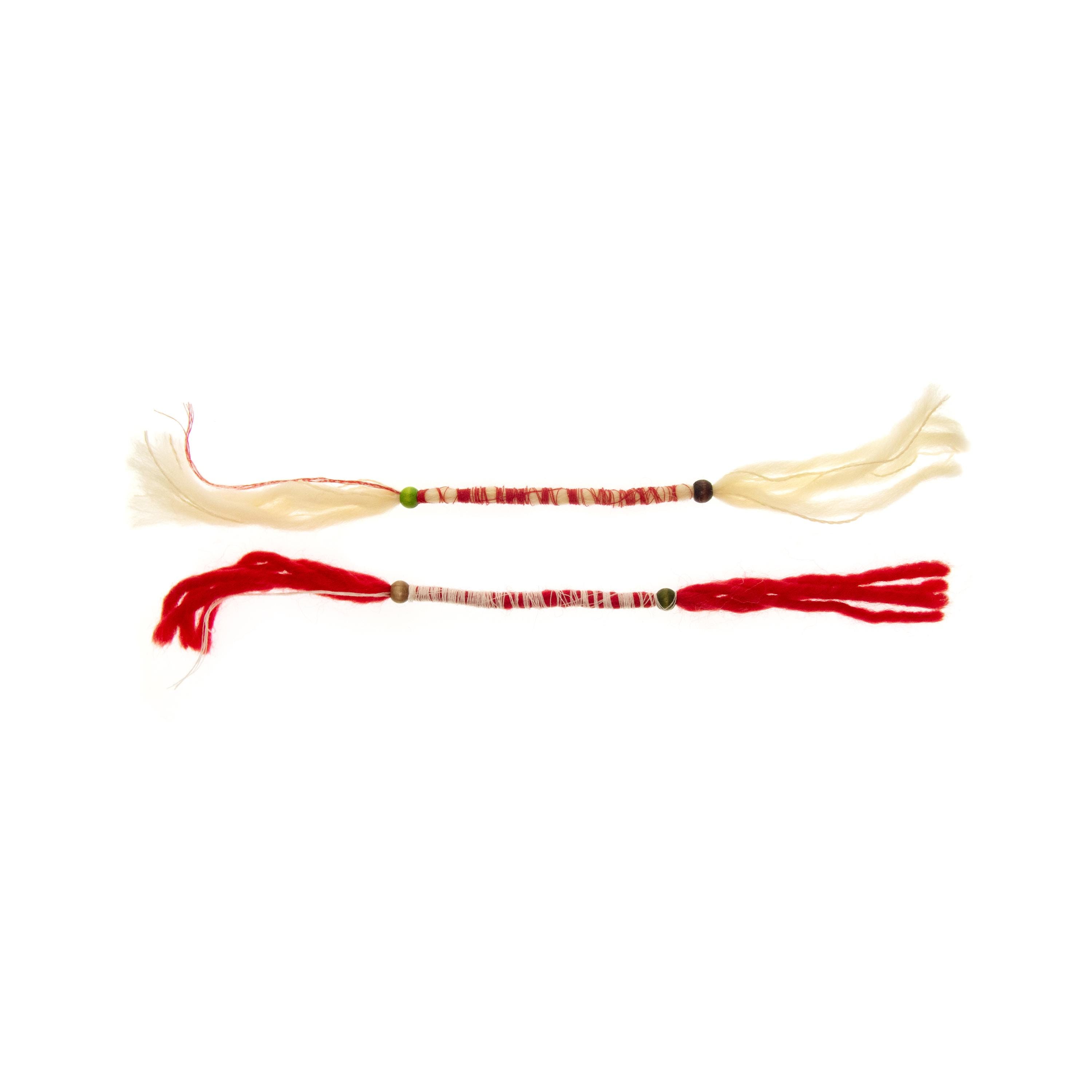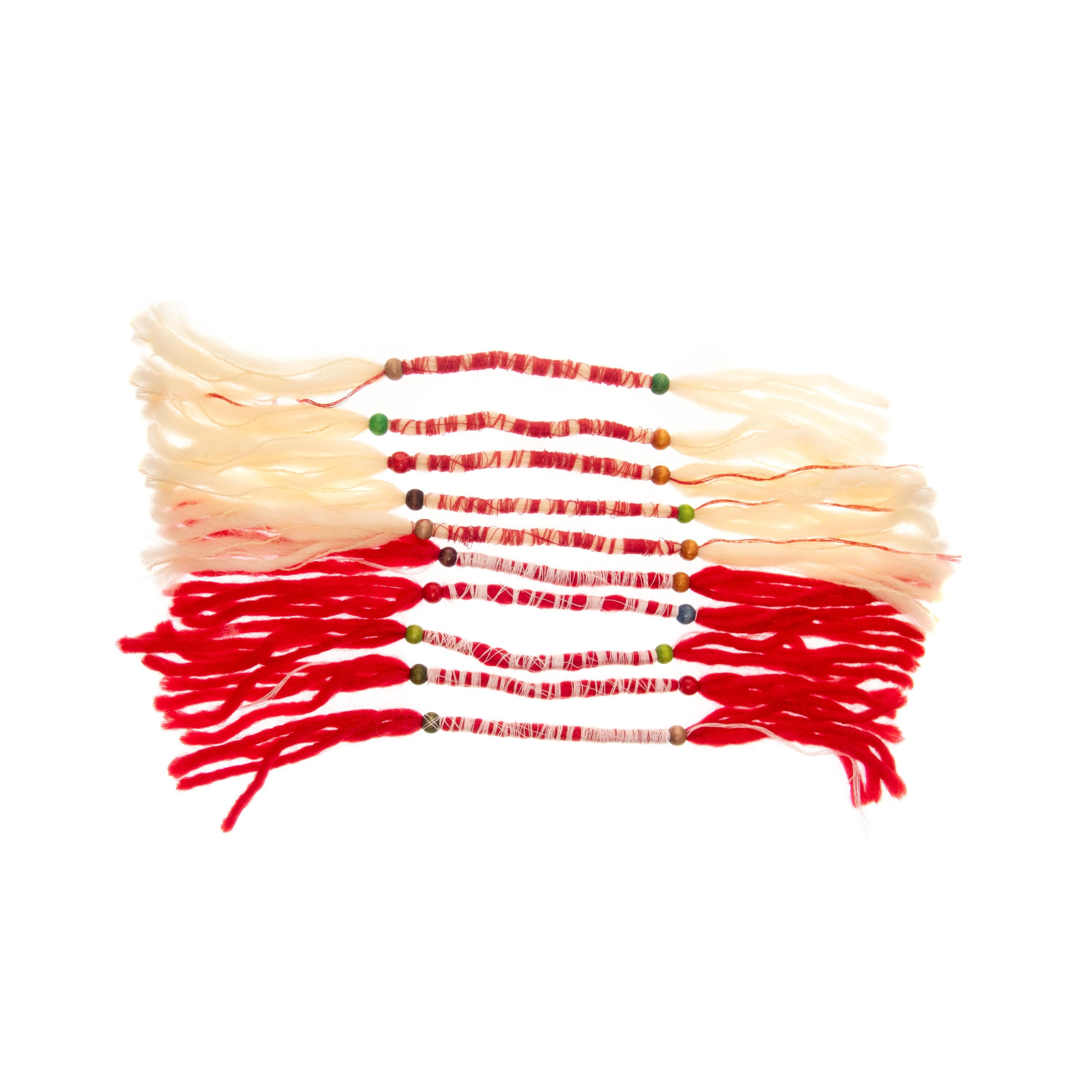 Nadamlada handmade these 10 Martenitsa Bracelets Bulgaria of natural wool, twisted with cotton thread. These Baba Marta bracelets are adjustable and comfortably fits womens and mens wrists. Luxury and handmade, they are Bulgarian Martenicka bracelets of red and white string and yarn, traditional for March 1st, worn on the hands. Other common names of the martenitsas are martenichki, martis, martisoare, martisor. Celebrate the beloved Bulgarian tradition of Baba Marta with our handcrafted Martenitsa bracelets. Each bracelet is a symbol of health, happiness, and prosperity, worn from March 1st until the first sight of spring. This set of 10 bracelets is perfect for sharing the joy of the season with friends and family.