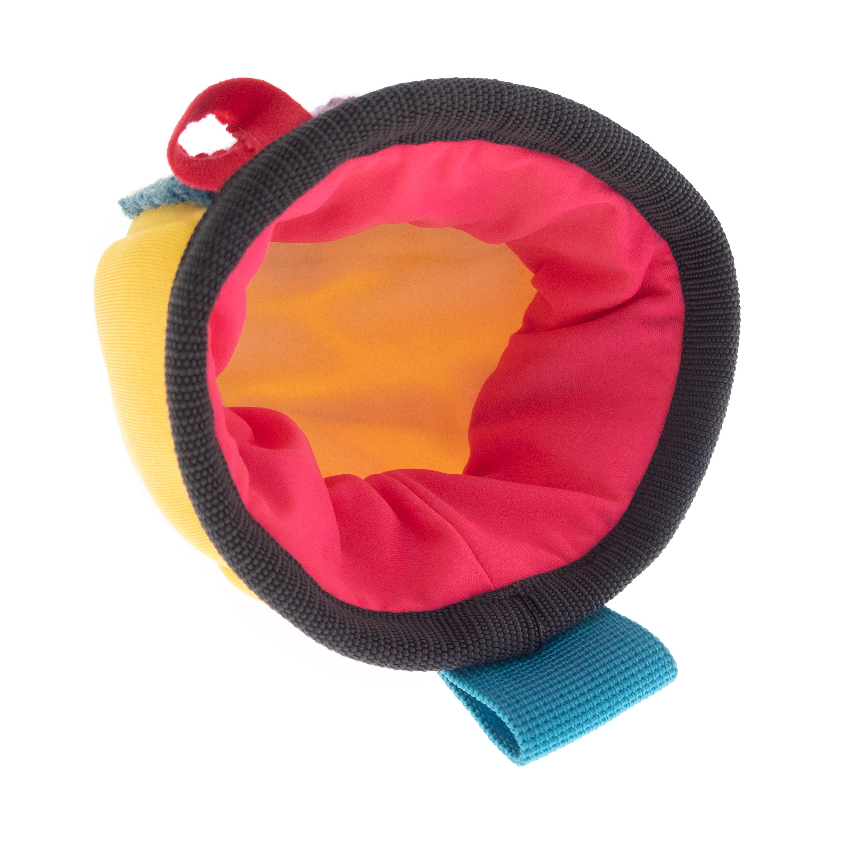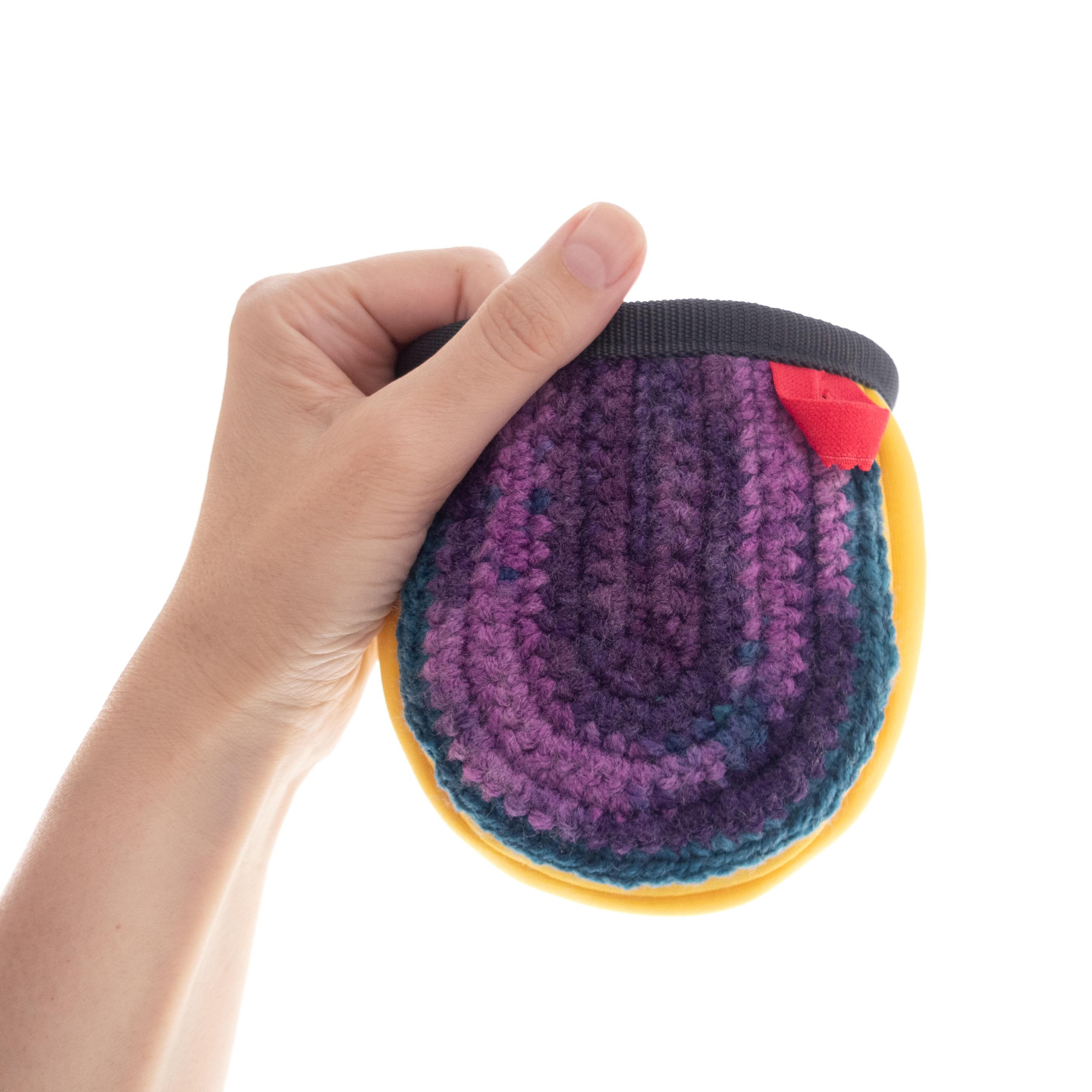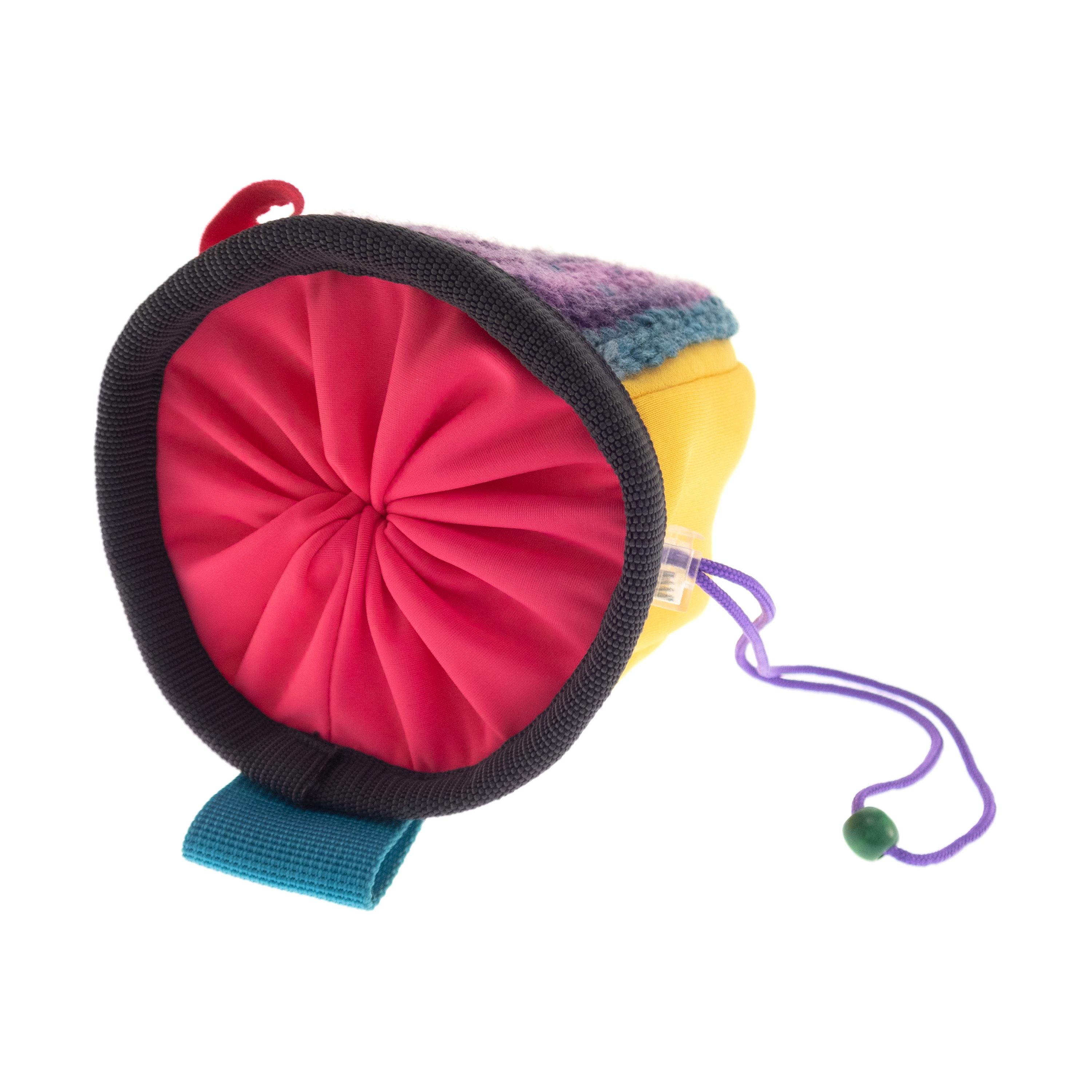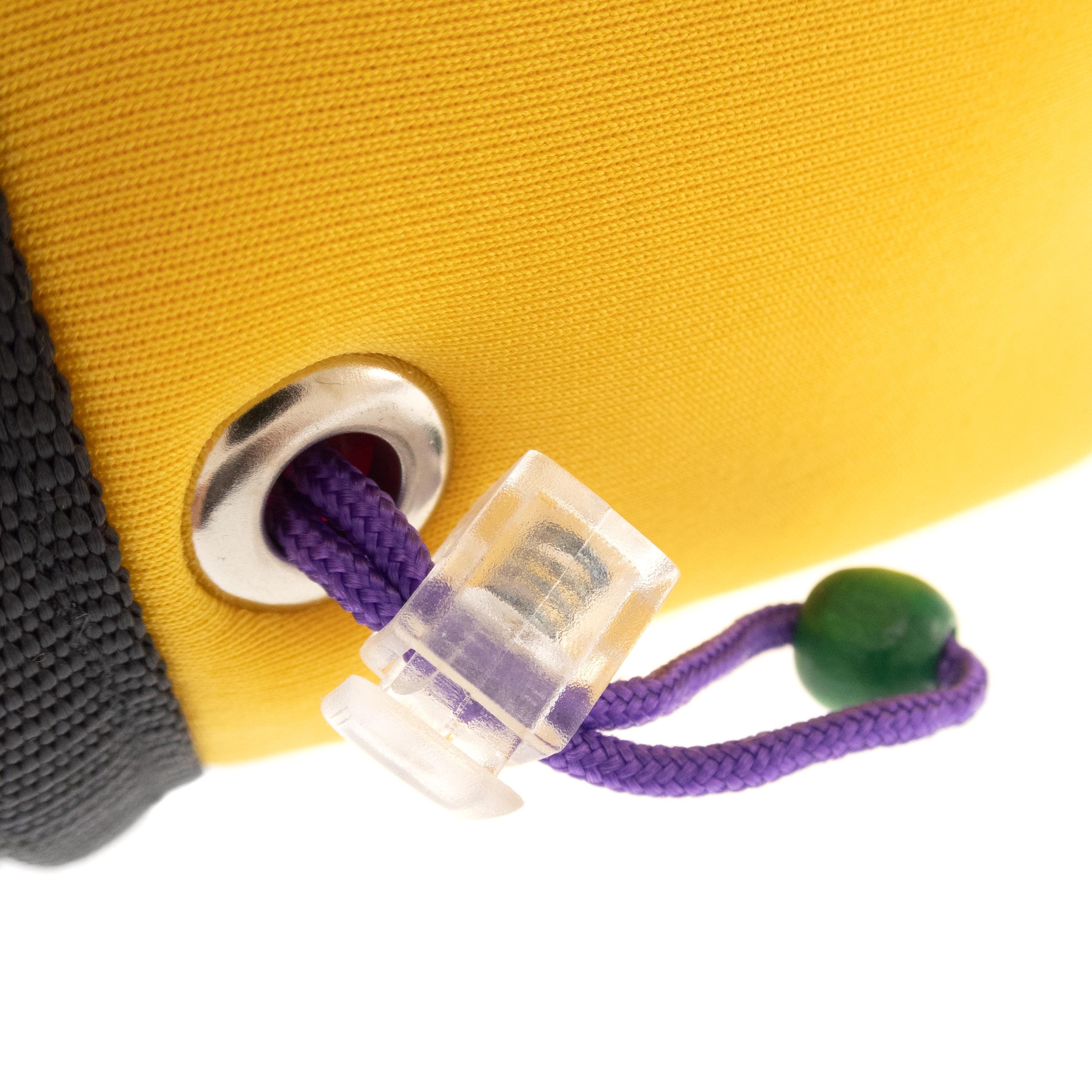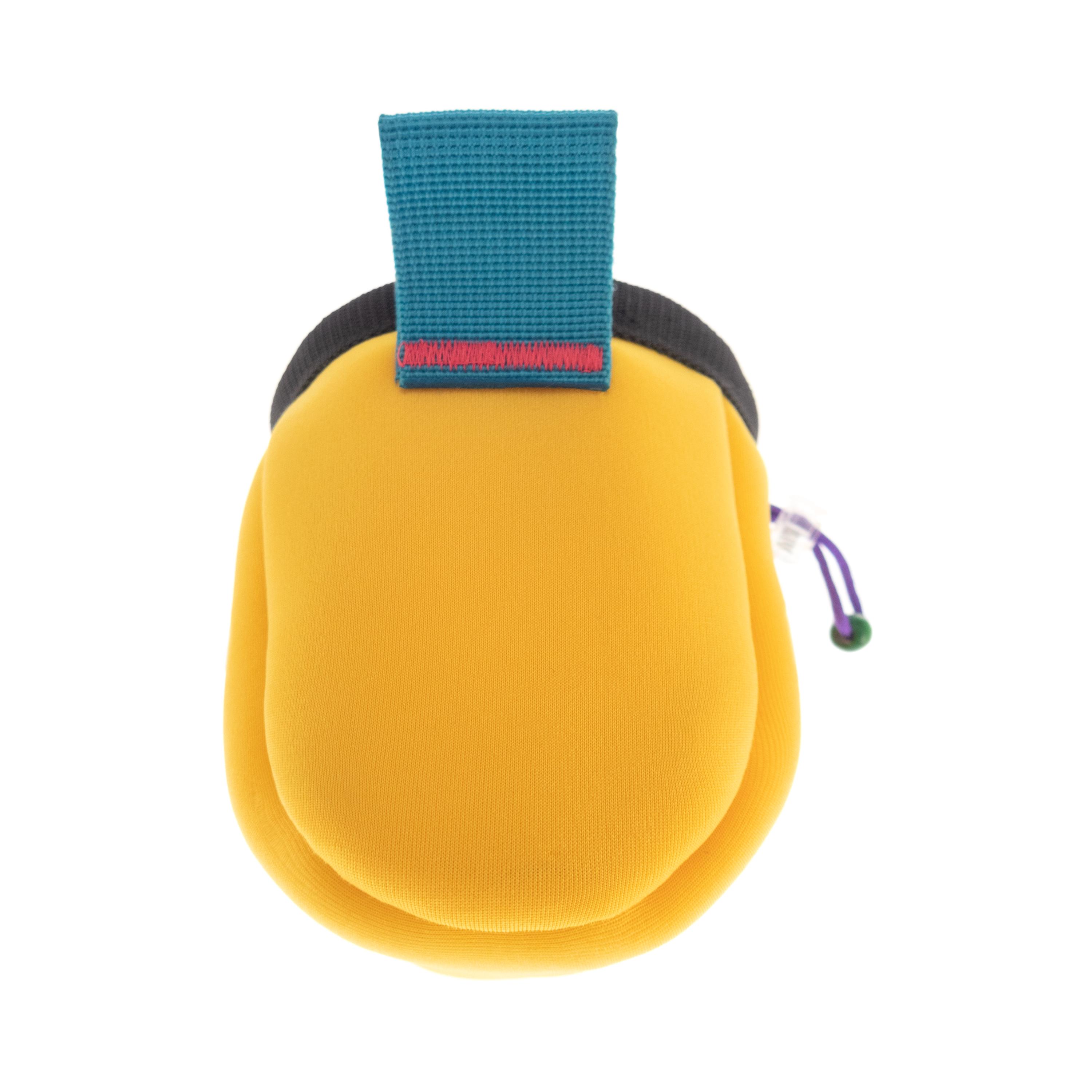 This is handmade Kids Chalk Bag Cute and small. We created is as children's a chalk bag for little girls. It is sewn of yellow neoprene and with hand crochet front part. It is nice for rock climbing or bouldering. Anything but simple. Soft polar lining helps for ideal chalk distribution, while the draw string closure seals the chalk bag neatly and keeps your chalk dry. it is well-sized for the little kids, with an extra protected upper rim. Effortless chalking up. With an elastic brush holder. This is a handmade chalkbag developed by climbers for climbers, with no compromises on quality or functionality.