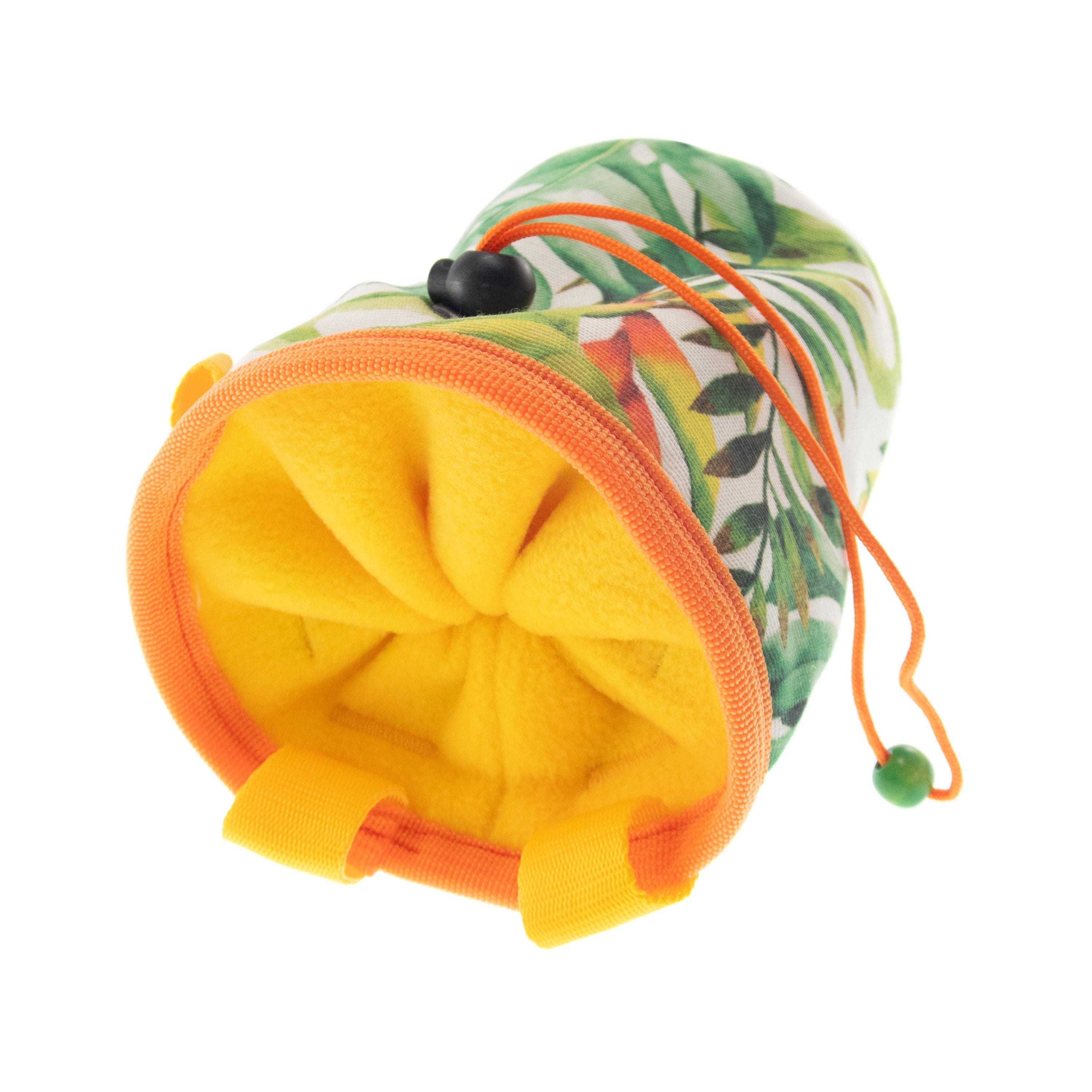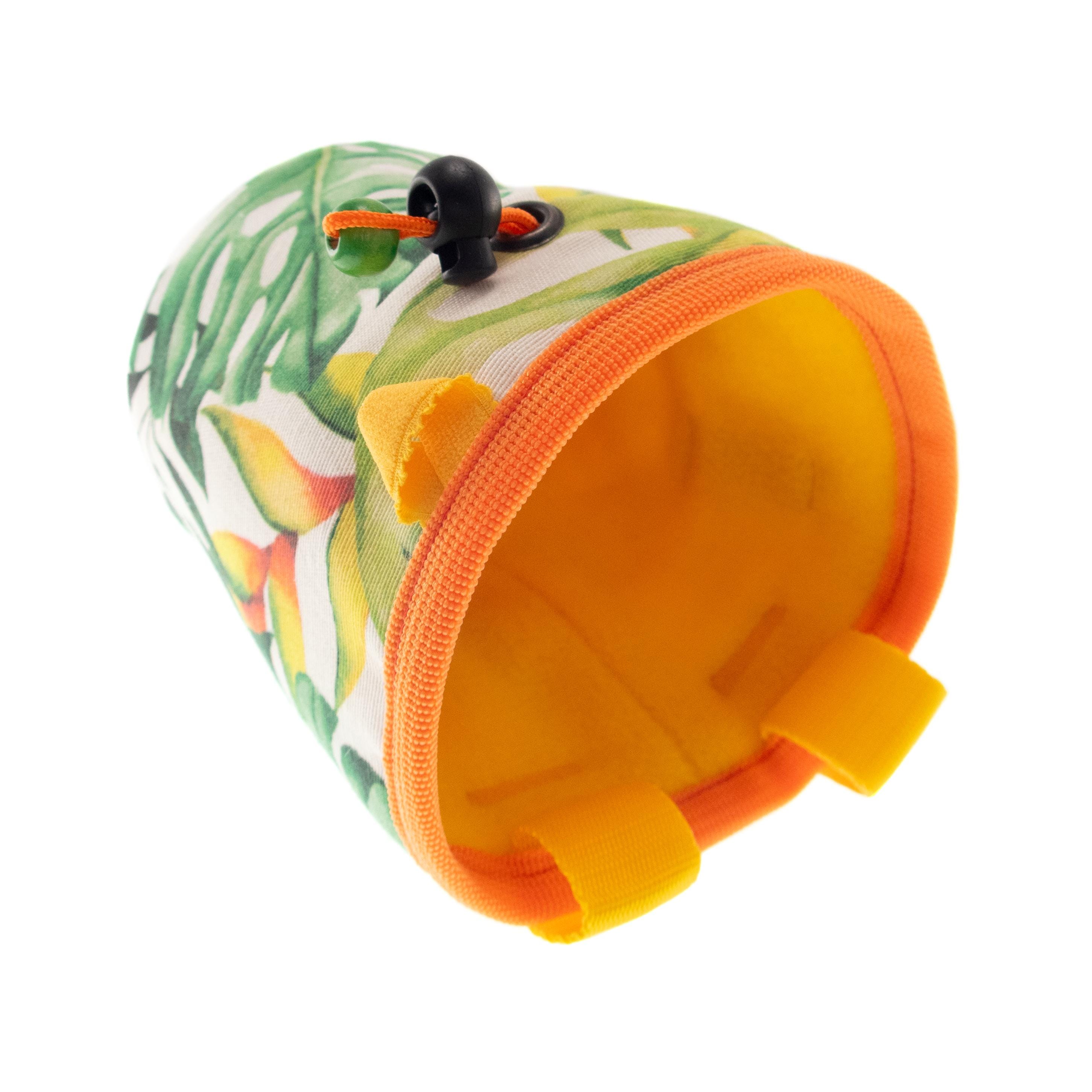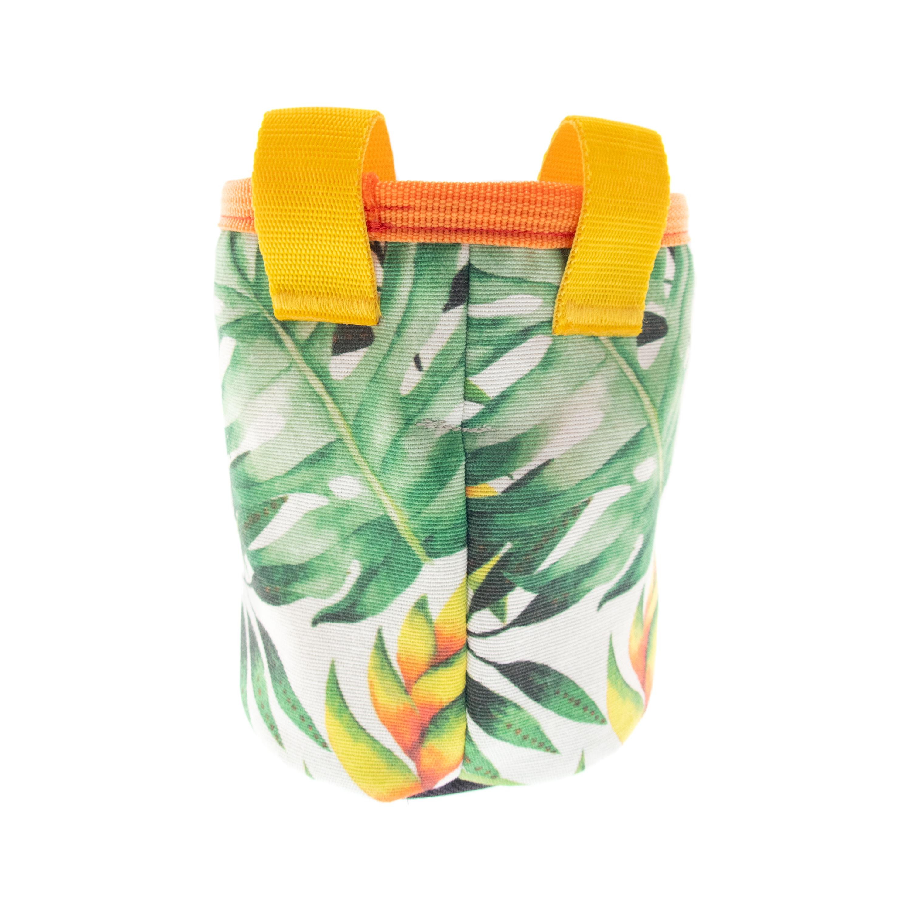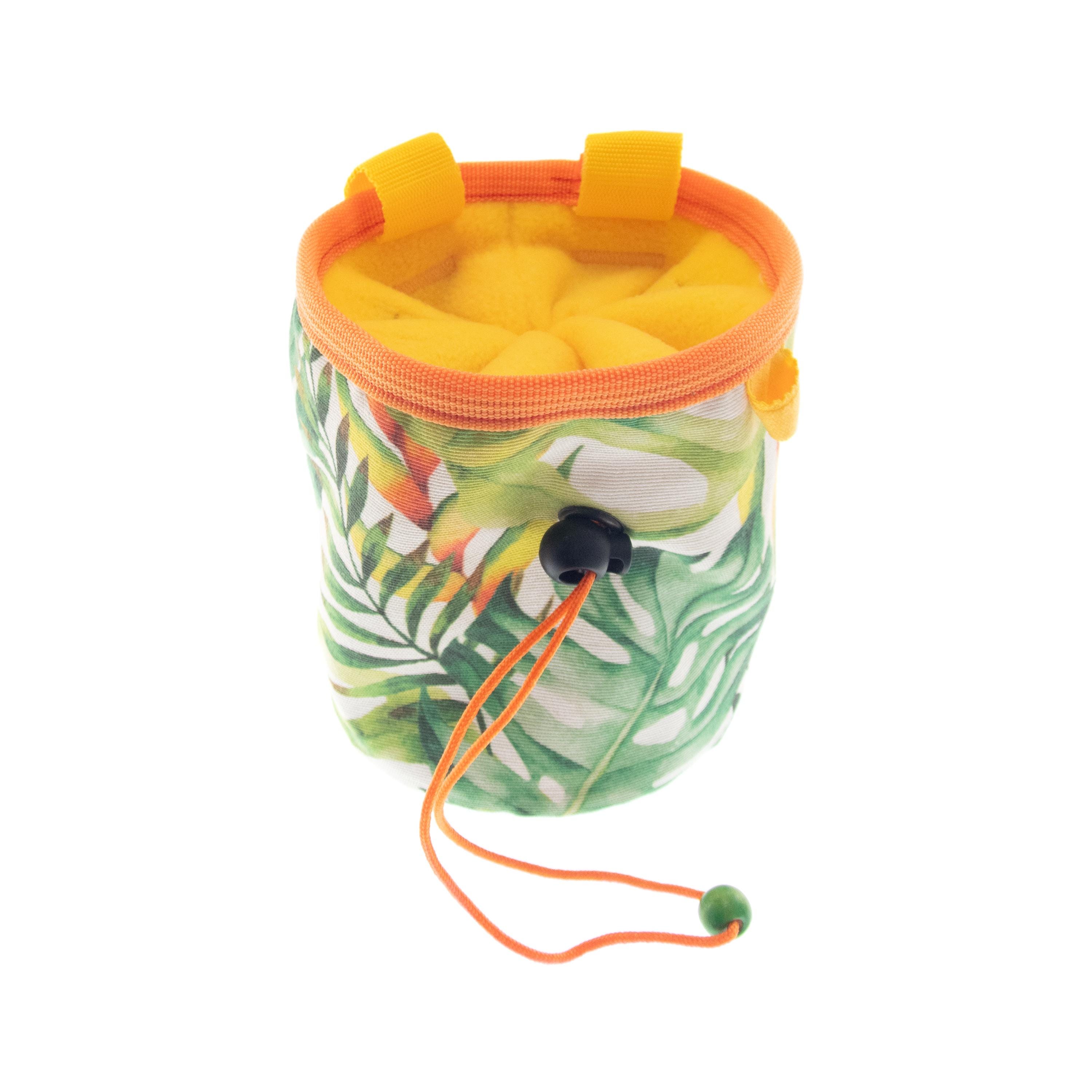 Unique in Nadamlada's Deluxe Chalk Buckets Climbing and bouldering accessories, this chalk pot is a chalk bag, sewn in funny style. It is nice for boulder and rock climb. Designed in the classical but useful cylinder shape. The pattern is leaves print. Main colors are green and yellow.