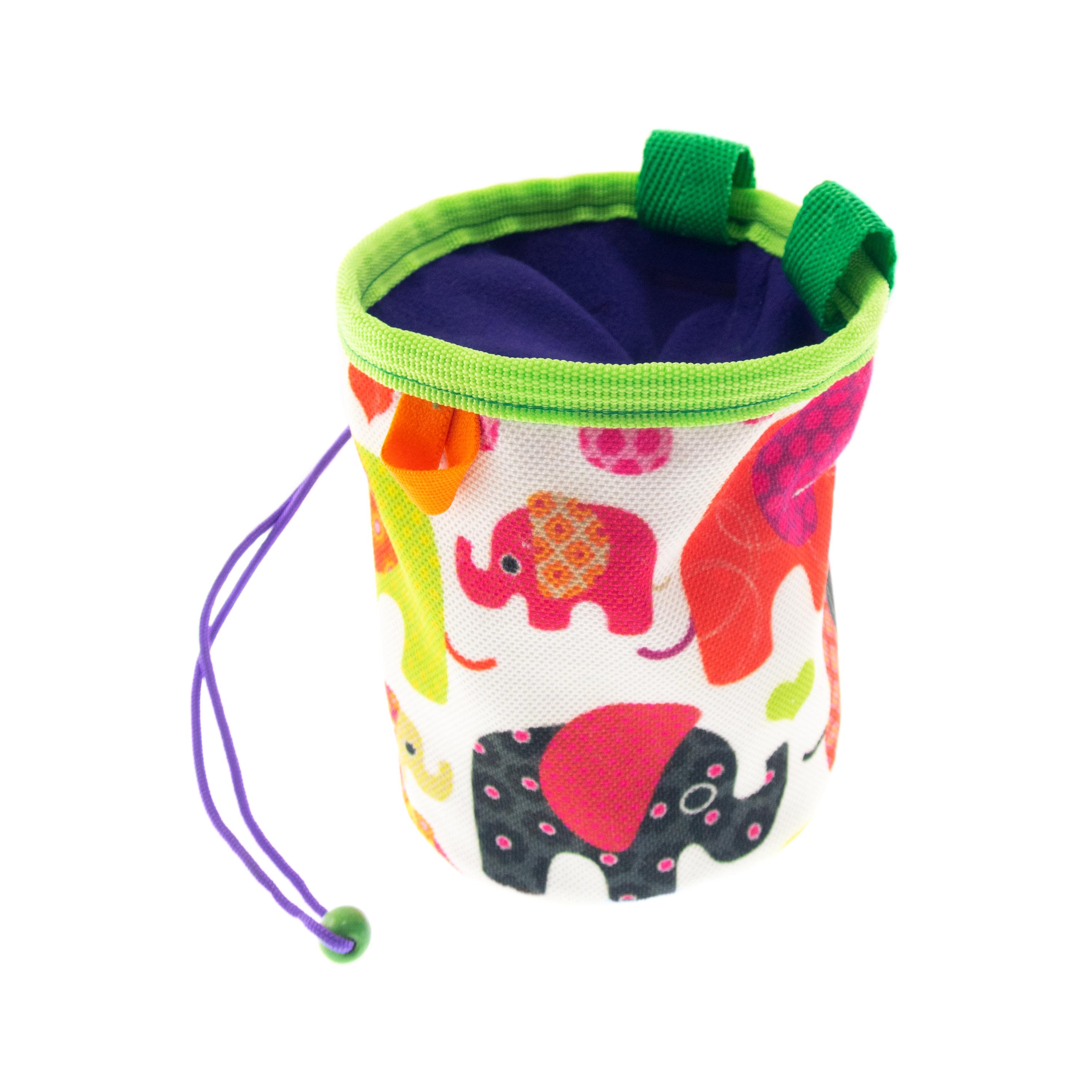 This is the Coolest and Unique Chalk Bag, handmade of fun fabric with elephants. This cool chalk bag is suitable for bouldering and rock climbing. The design is traditional and proved in time classical cylinder shape. The size is big enough to men's and women's climbers hands.