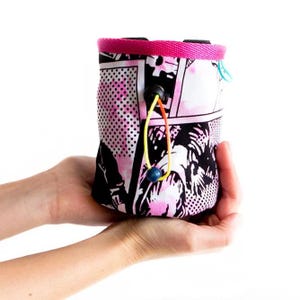 If you purchase you will get the pictured handmade chalk bag for outdoor and indoor rock climbing and bouldering .