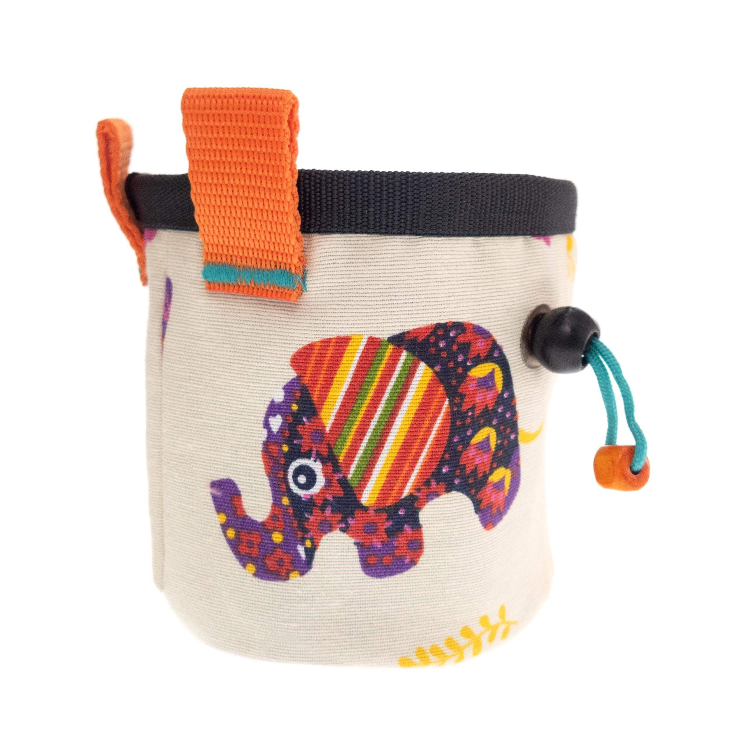 If you order, you will get the handmade children's rock climbing gym chalk pouch with elephants. It is only one available. You can purchase this small child boulder bucket for wall climb gift wrapped.