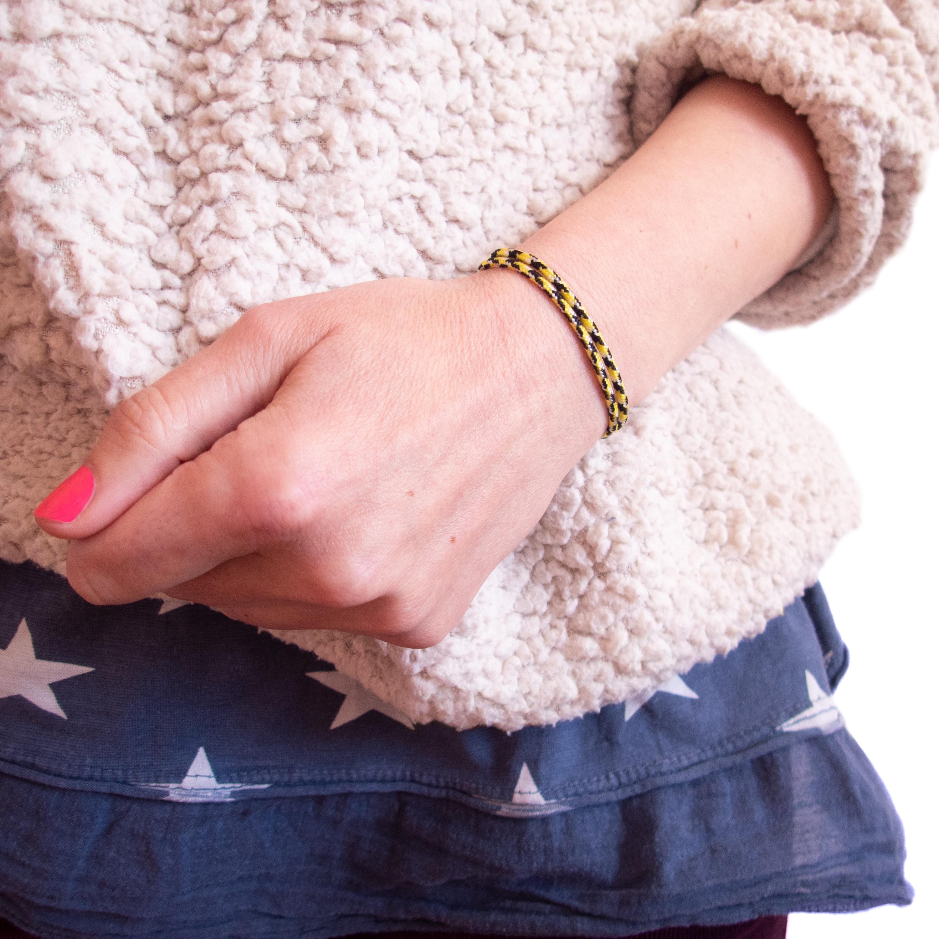 * Nautical aesthetic: This bracelet evoke the timeless charm of the sea and sailing. The navy rope in yellow, black and white pattern, brings a nautical theme to your style, reminding you of the ocean and adventures on the water