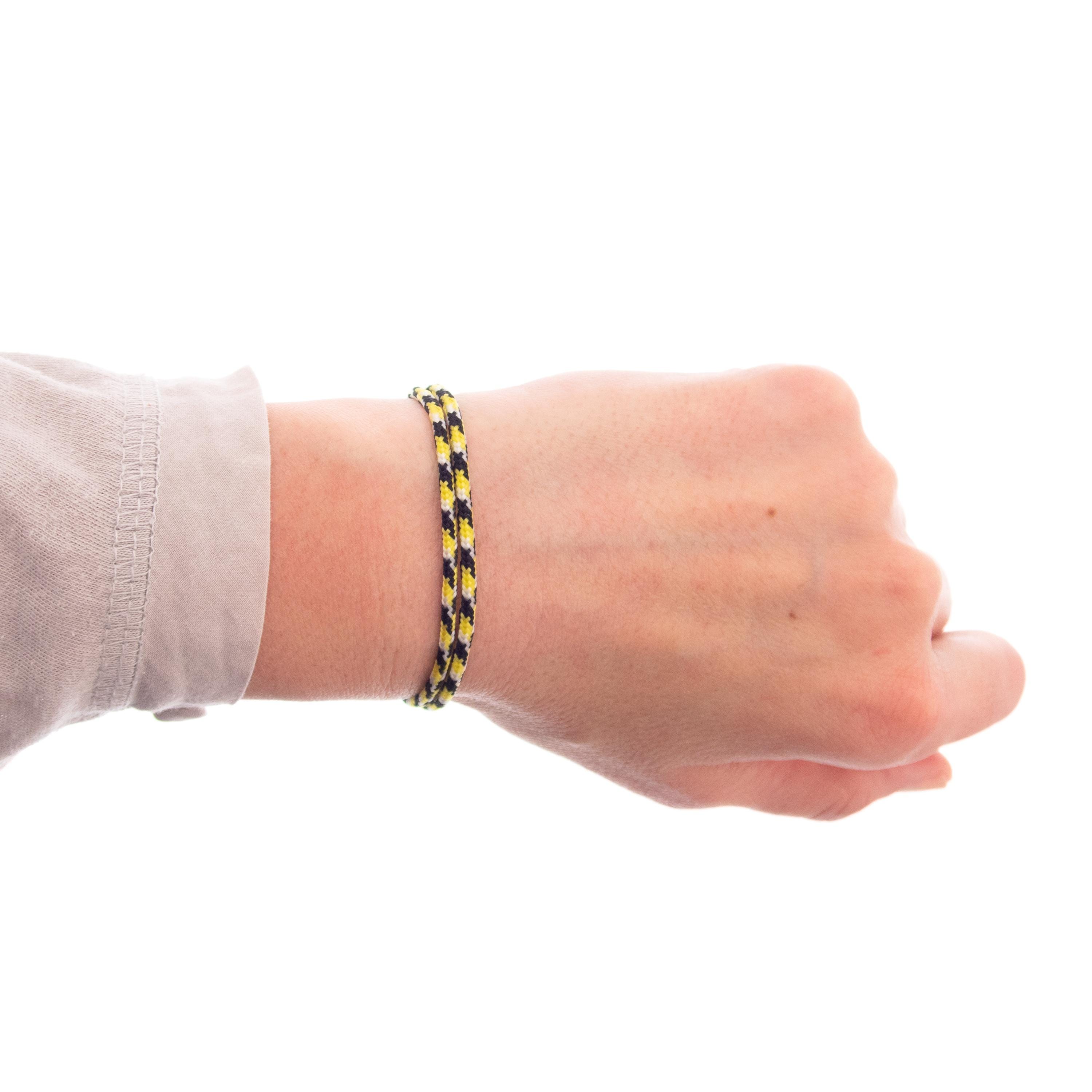 Handmade Ladies / Mens Sailing Rope Bracelets, designed in nautical and navy style. This rope bracelet is adjustable in size. Nadamlada created this string jewelry of tiny rope in yellow, white and black pattern. The size comfortably fits guys and ladies wrists. This bracelet is nice couples gift idea. The adjustable knots allows for a comfortable and secure fit, ensuring that one size truly fits all. This feature adds convenience when selecting a gift, as you don't need to worry about sizing. All people with active lifestyle like surfing, climbing, travelling, sk8ing or running will love it. It is durable and long lasting. The thickness of the rope ensures that this bracelet is lightweight and comfortable for everyday wear. Whether you're sailing on the seas, rock climbing or going about your daily life, it is designed to be a comfortable and stylish addition to your outfit.