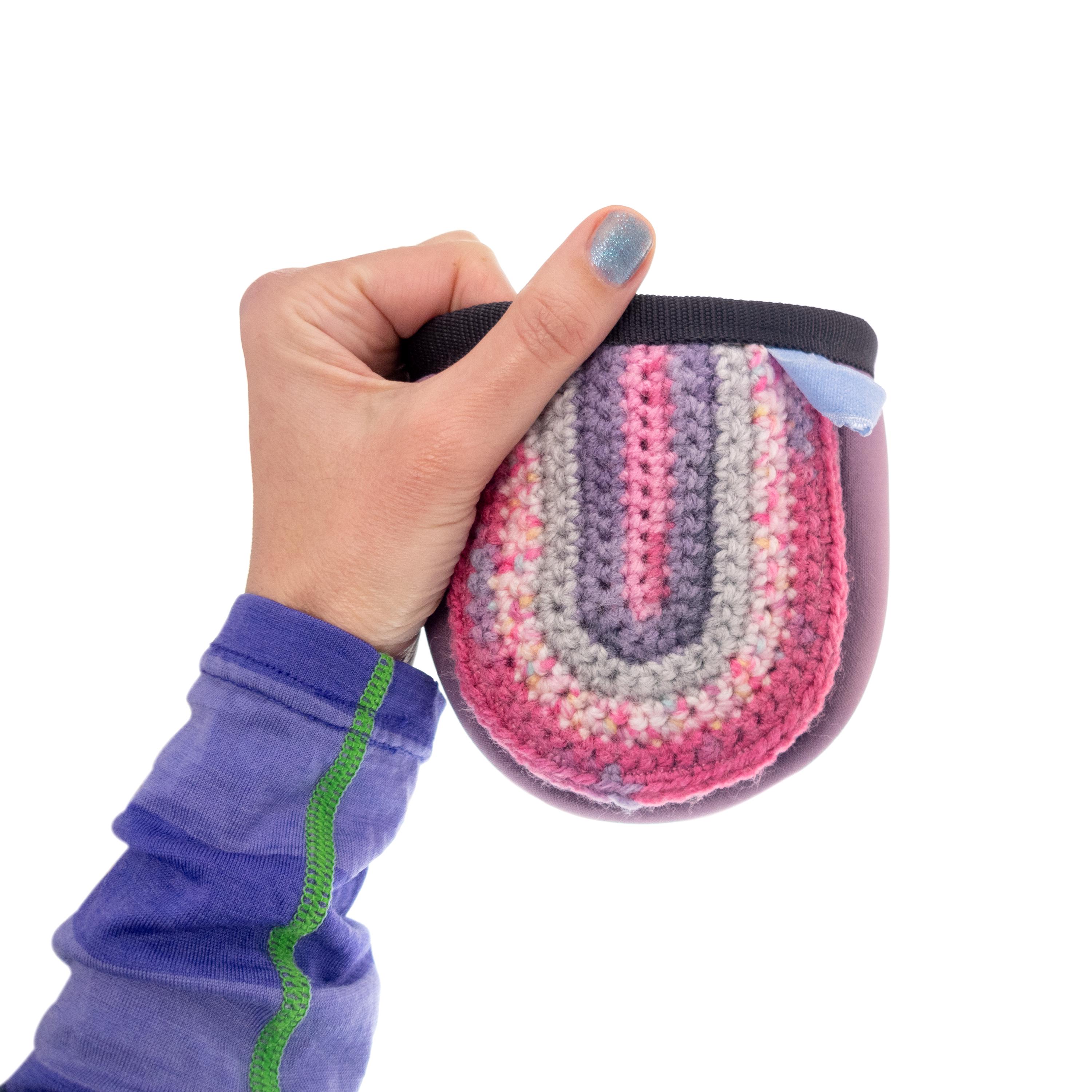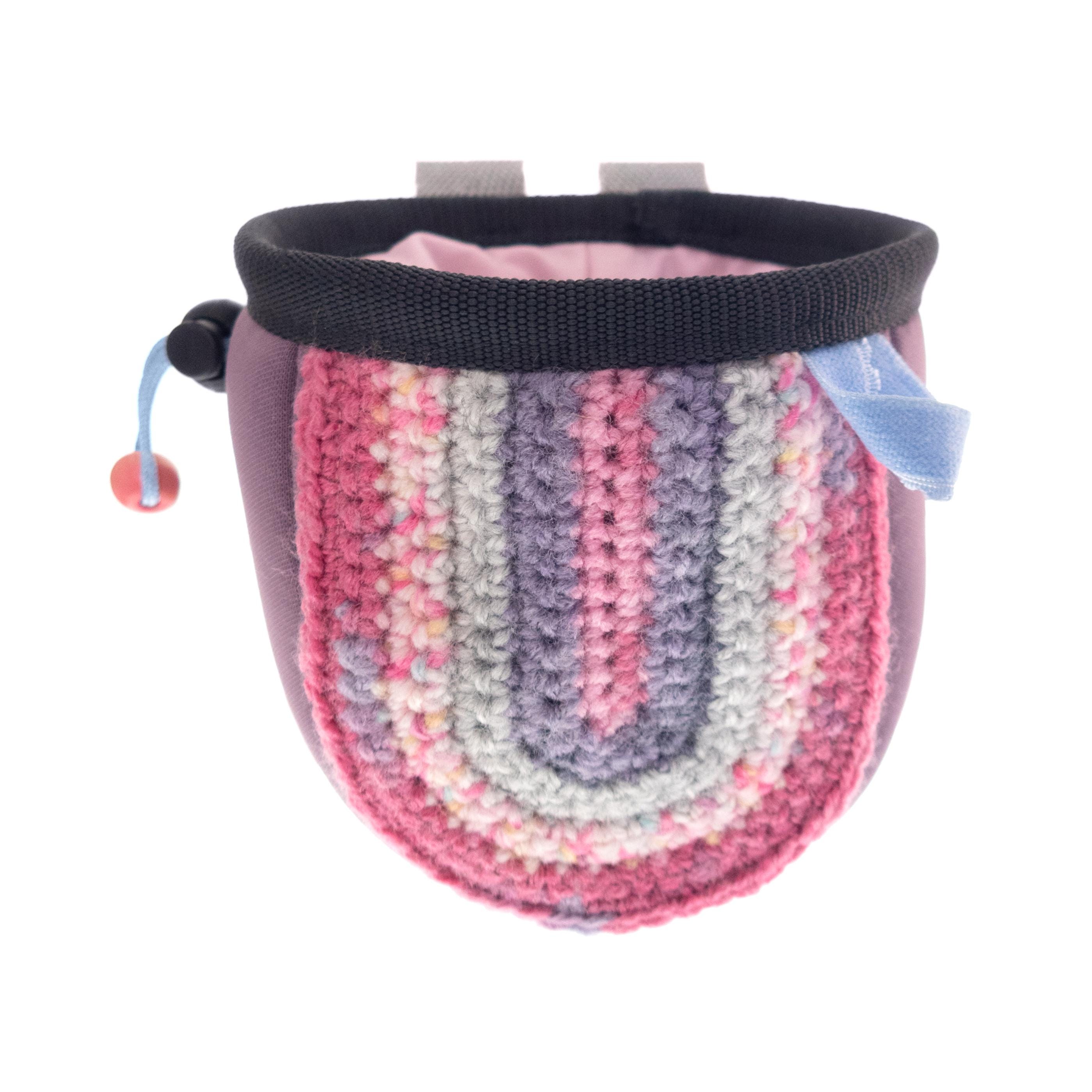 Are you looking for unique and handmade Children's Chalk Bag Climbing for Girls? We created this kids chalk pouch for bouldering and rock climbing youth. It is smaller in size than usual chalk holders and is designed specially for children, so the pouch is the right size for the hands of little climbers. Nadamlada designed this chalk bag of pink neoprene fabric. It is with hand crochet front part, that is nice accent. The chalk pouch closes very well with a stopper buckle and a drawstring and pale pink elastane fabric. It is with fun and creative design. Children love to have fun and be creative, and this pink neoprene chalk bag will add a touch of excitement to their climbing experience.