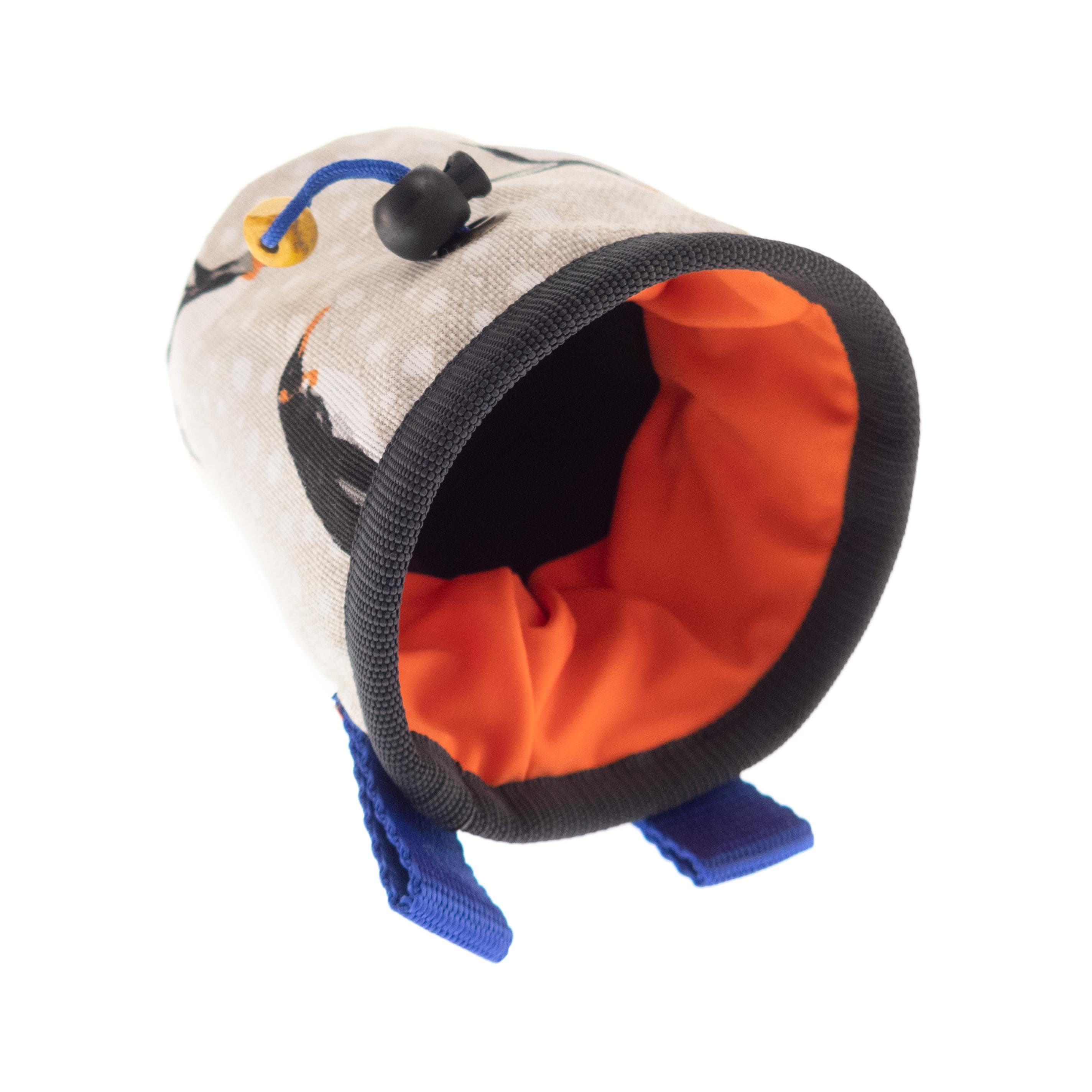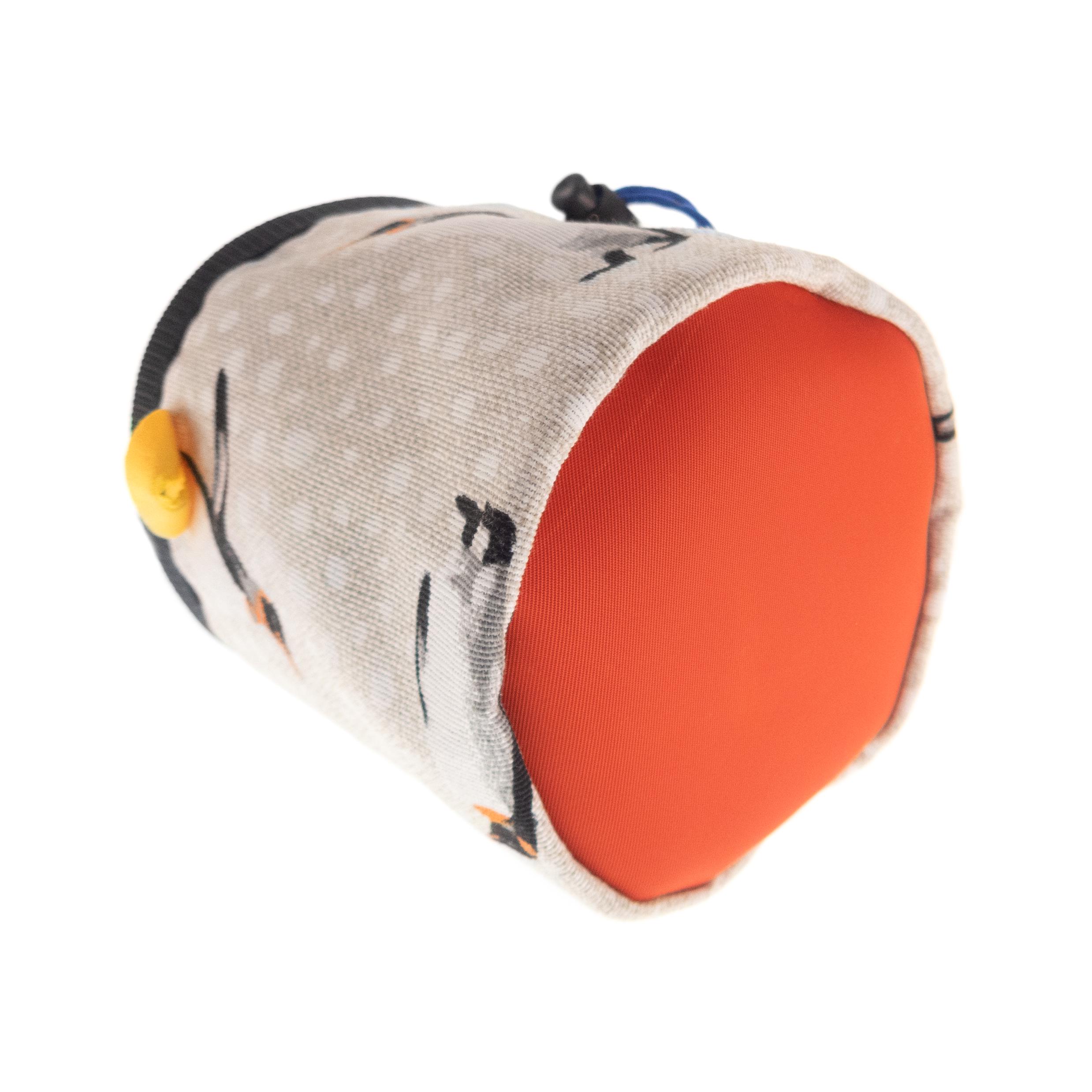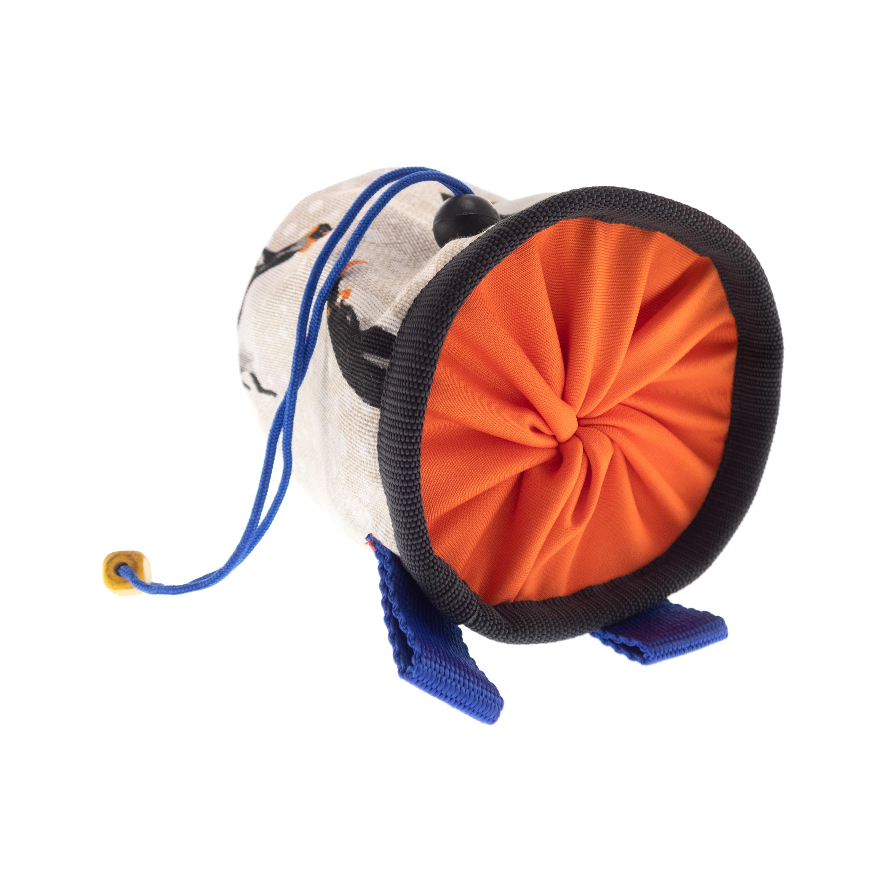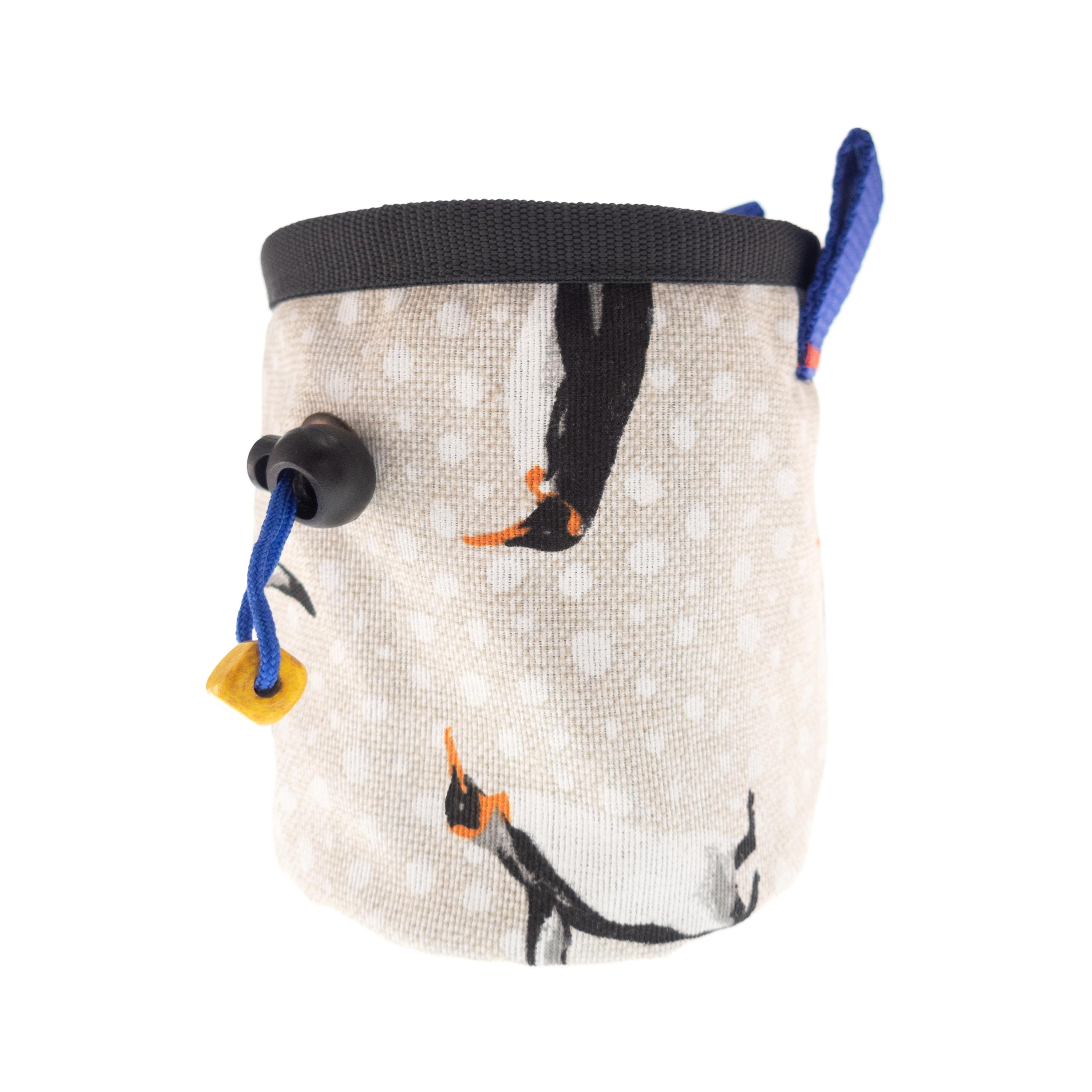 Rock Climbing Children's Chalk Bag for beginners, handmade by Nadamlada. We designed it for the little climbers, who have interests in alpine, indoor of vertical climb and bouldering. This kids chalkbag is smaller in size that the chalk bags for adults, but have all functions, that the others have. It is with elastic brush holder, durable bottom, and closes very well. The pattern of the fabric is with penguins. It is stylish, cool and every kid will like it.