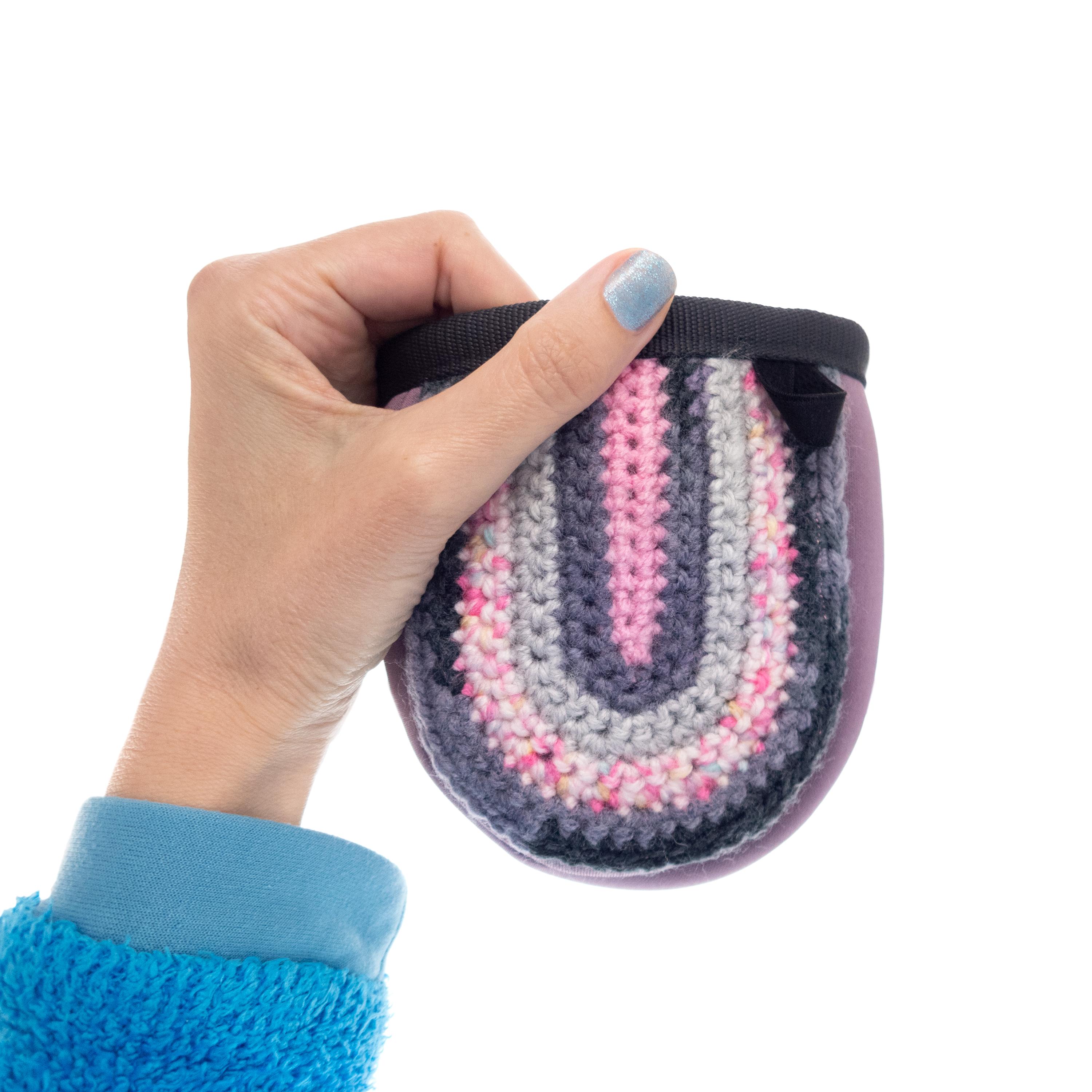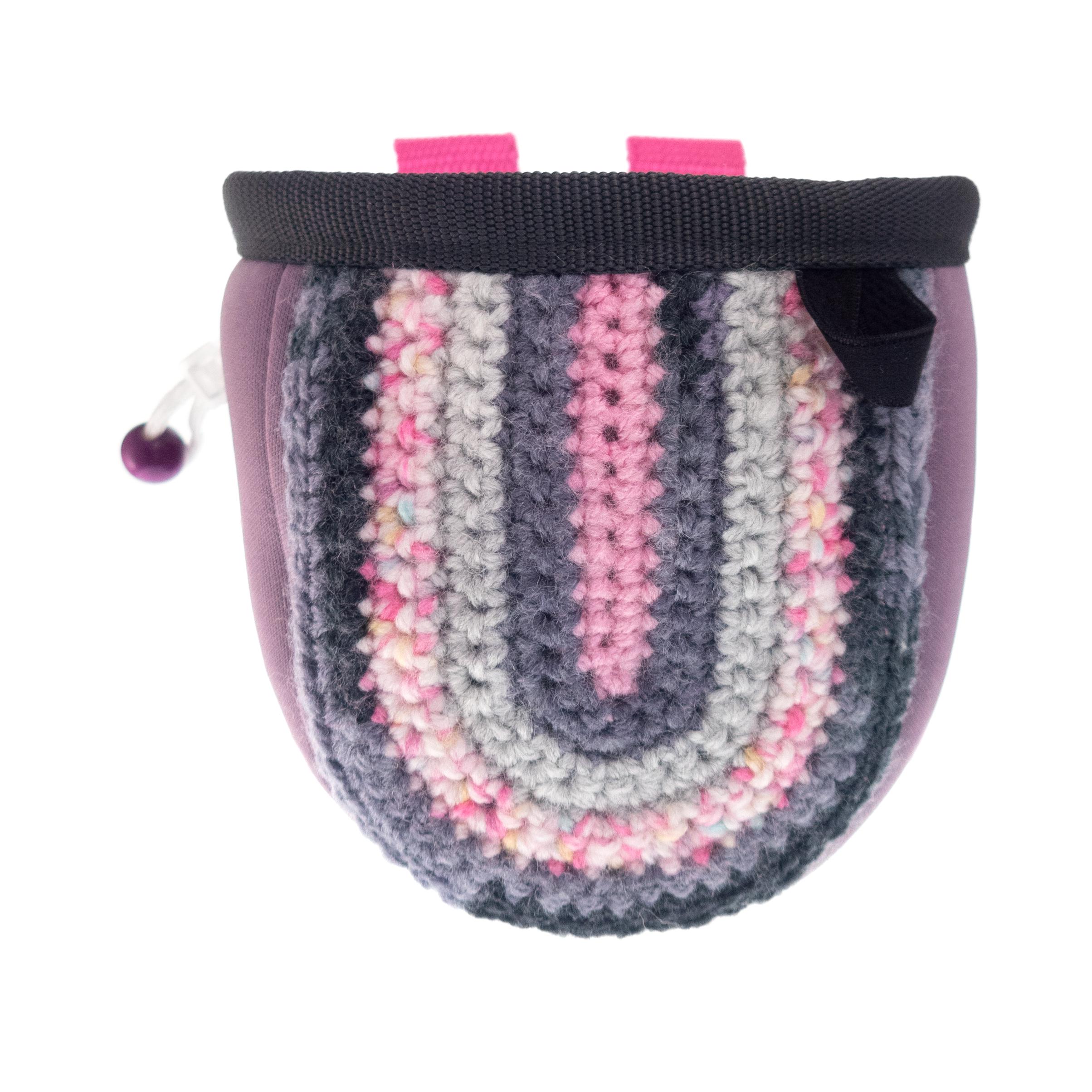 This is an idea for Gifts for Climbers. The bouldering chalk bag is for children and kids, who start their rock climbing or boulder adventure. You can use this handmade chalk bag for child and junior birthday party gift idea also. Every climbing kid dreams of its own chalk bag, to imitate their friends "the real climbers". Nadamlada handmade this chalkbag of neoprene fabric. The front part in hand knit of polyester yarn in pink, dark violet and grey yarn. It can be attached on harness or on belt on its two bright pink loops. Closes well. Smaller in size, lighter in weight and better in design. Only one available. For your special little climbing girl :).
