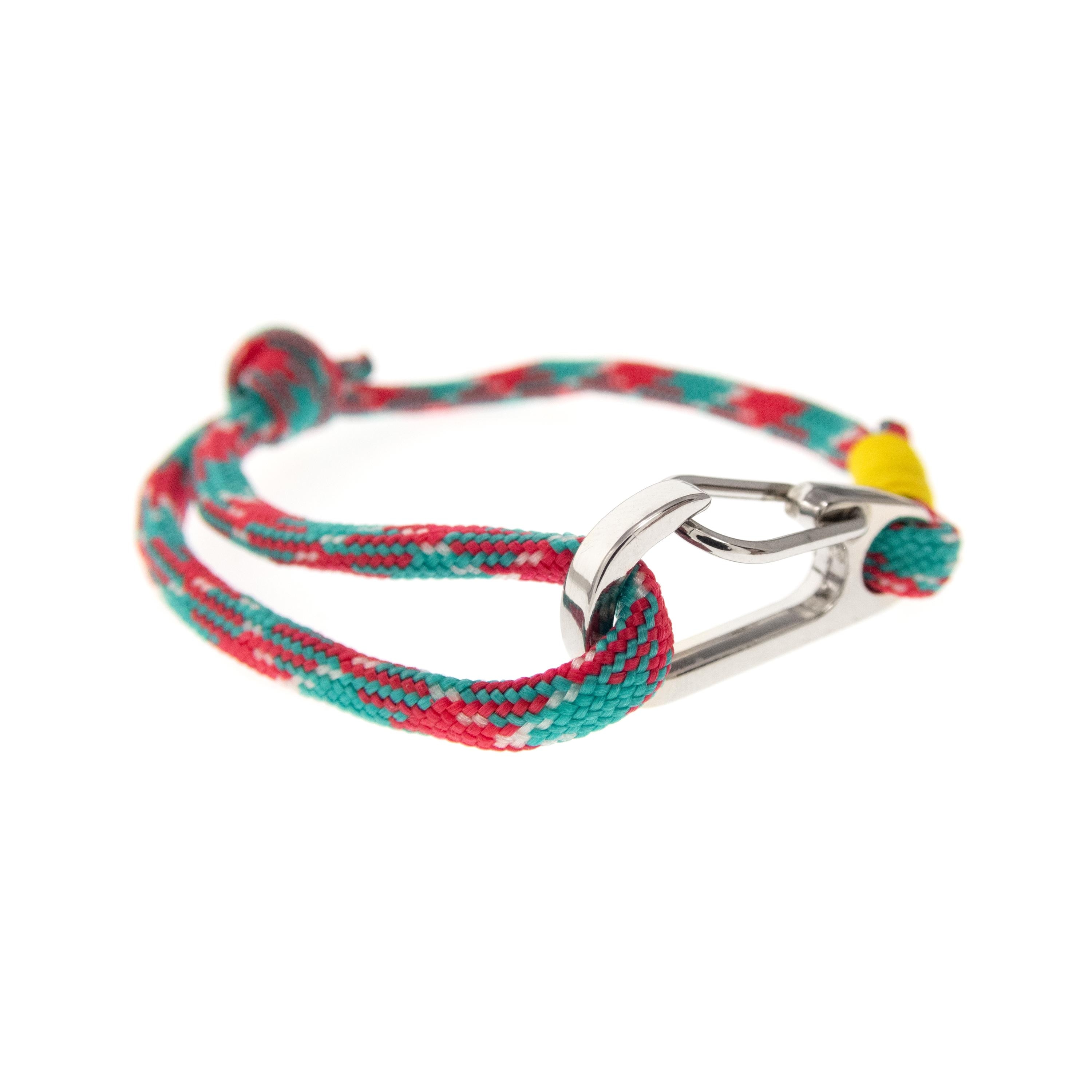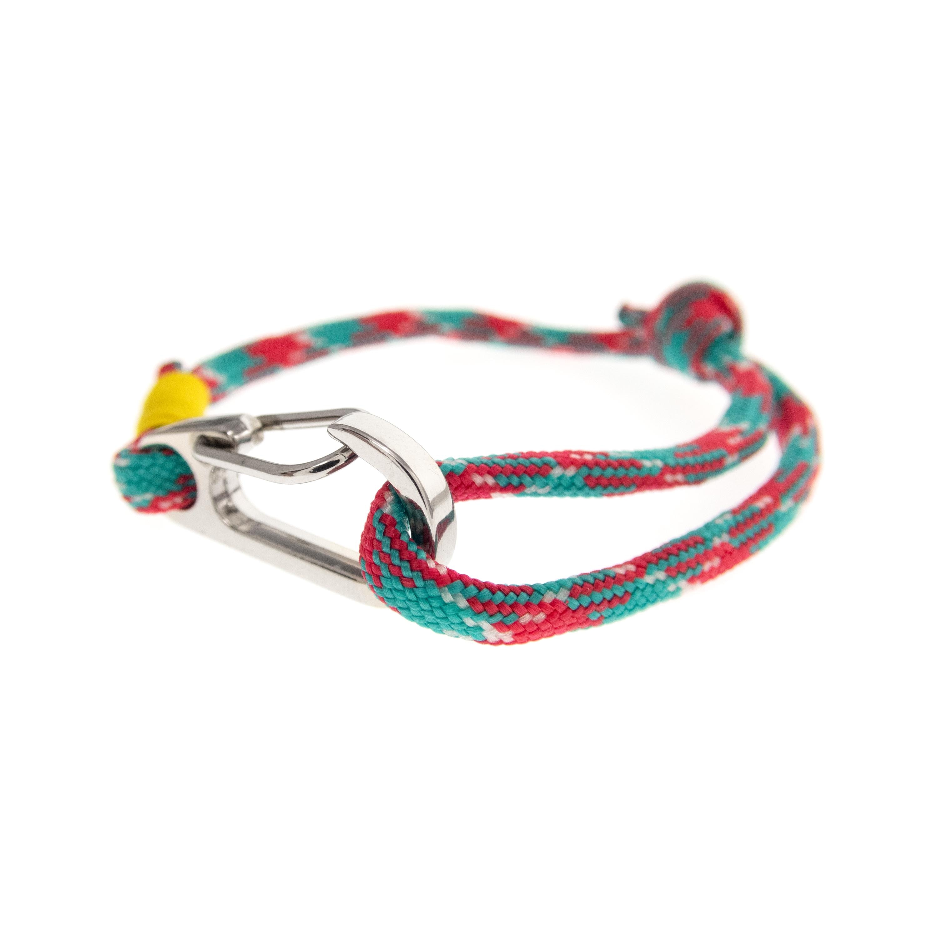 Rock Climbing Rope Bracelet with Clasp, Custom Rock Climbing Jewelry, Hiking Bracelet for Guys, Girls. Red and Green Mens Survival Bracelet