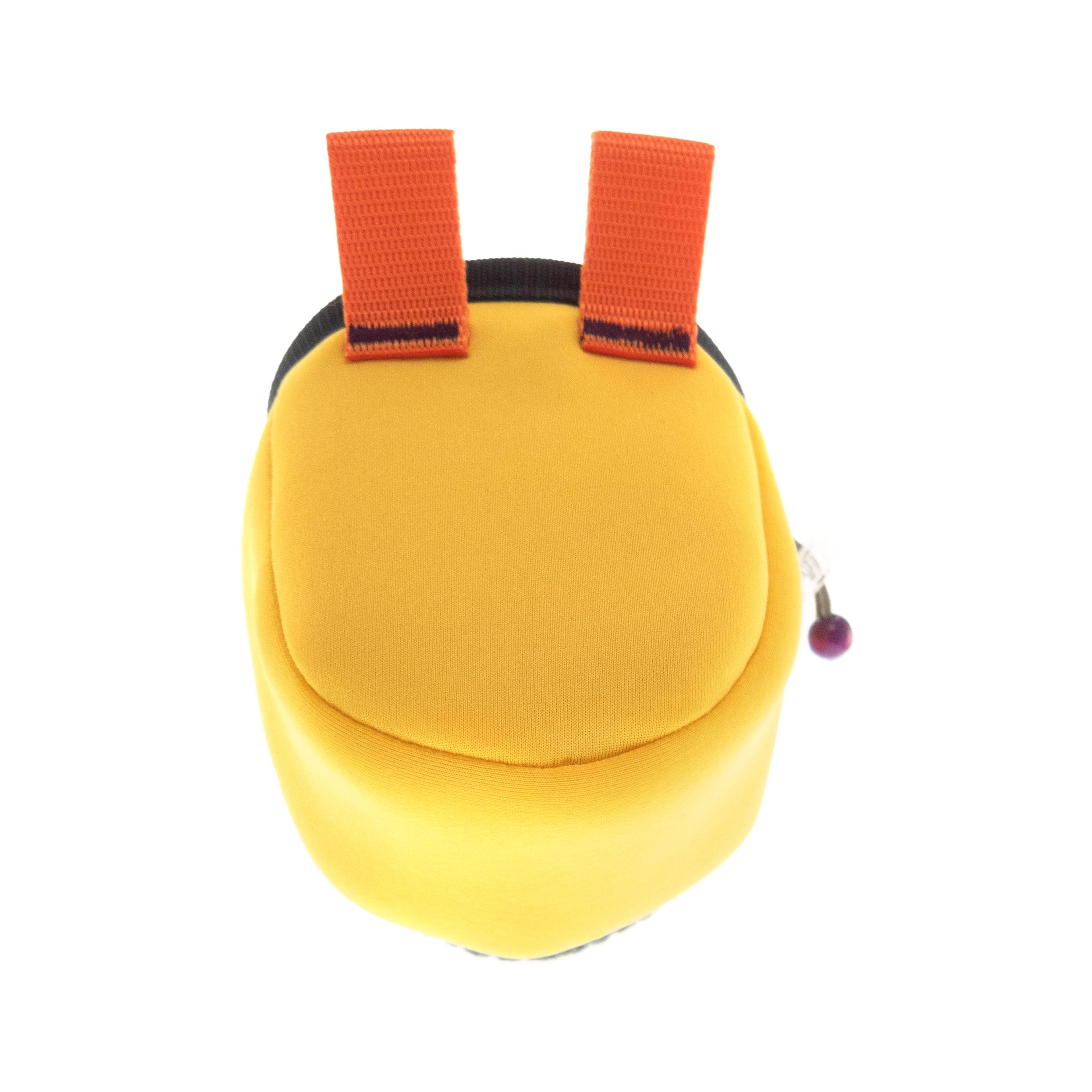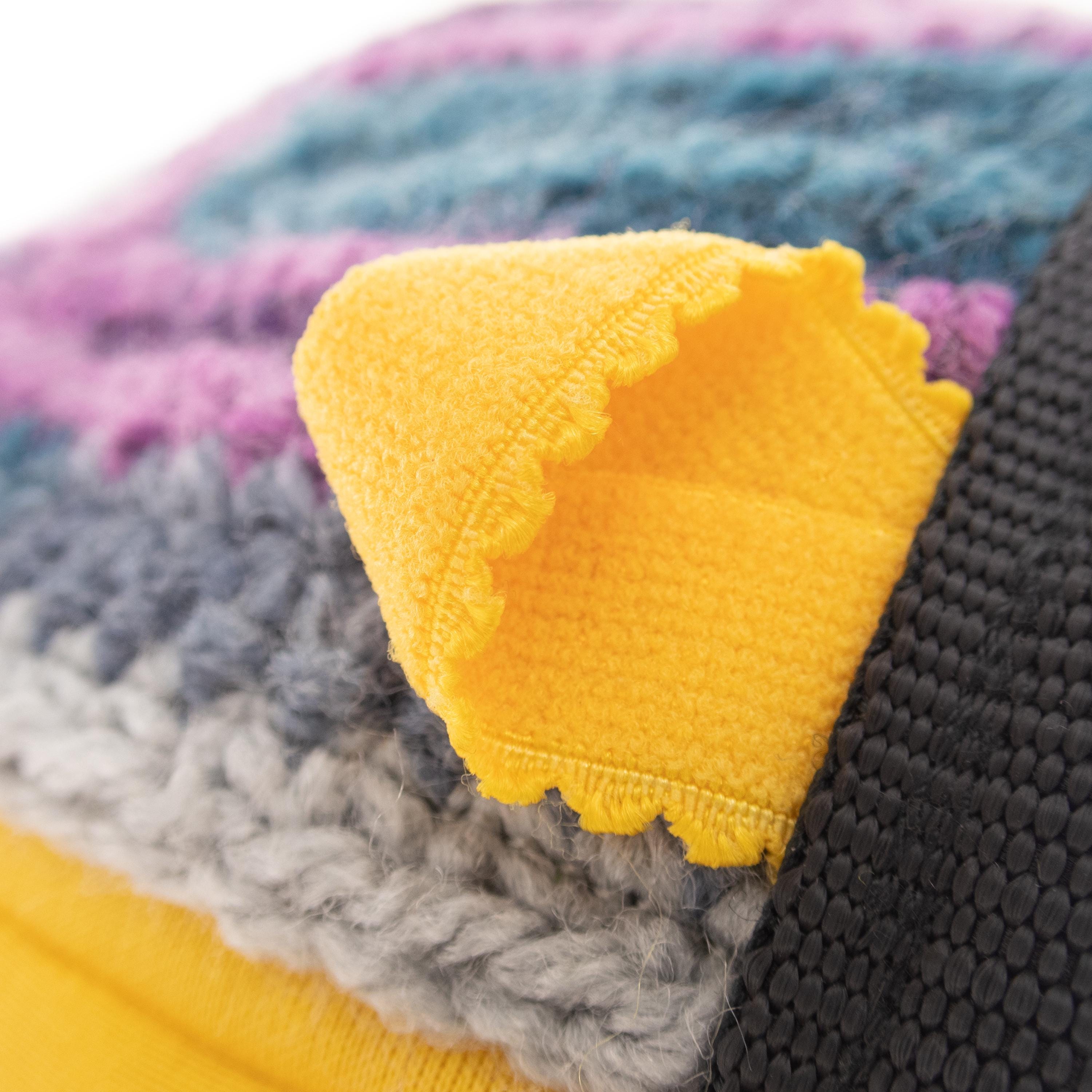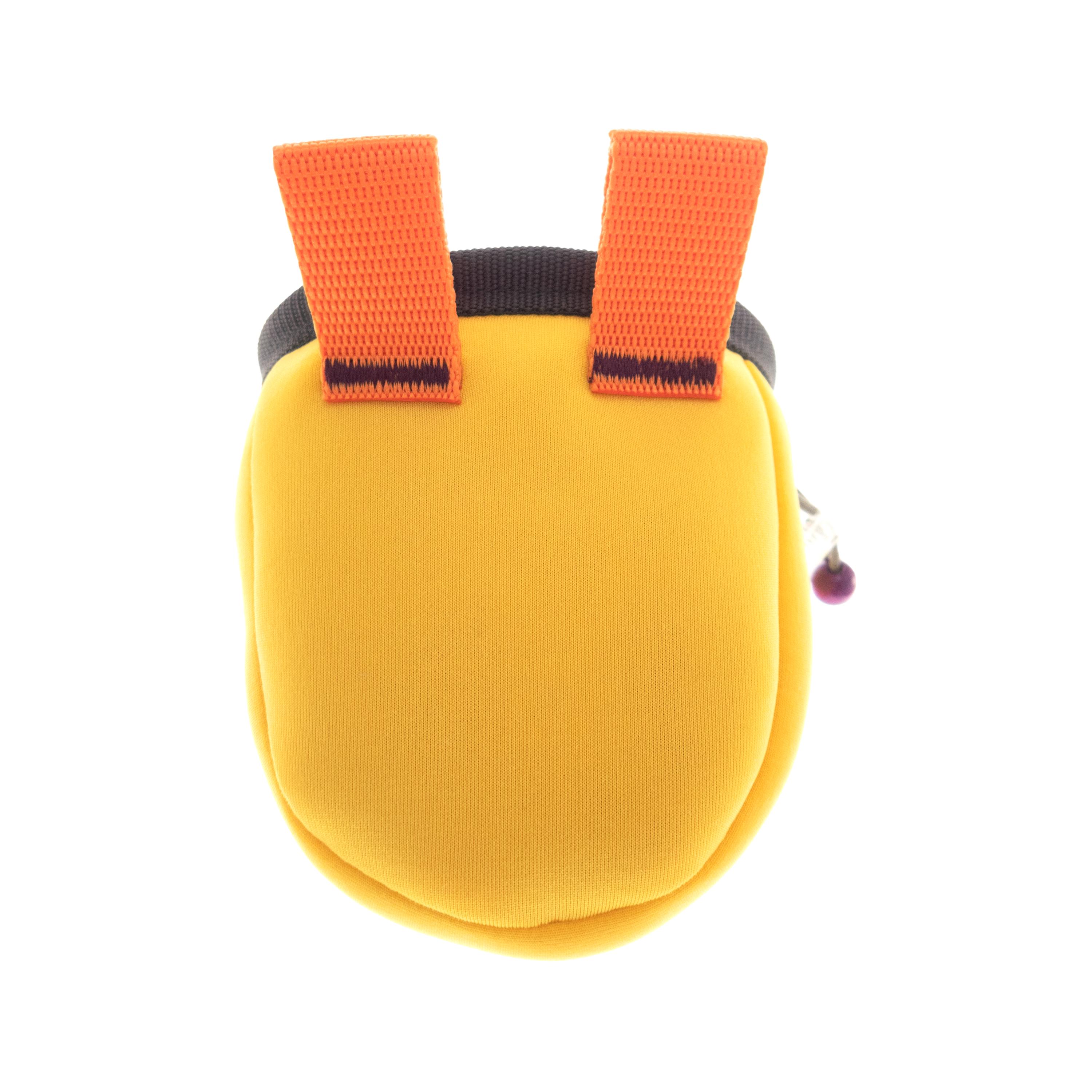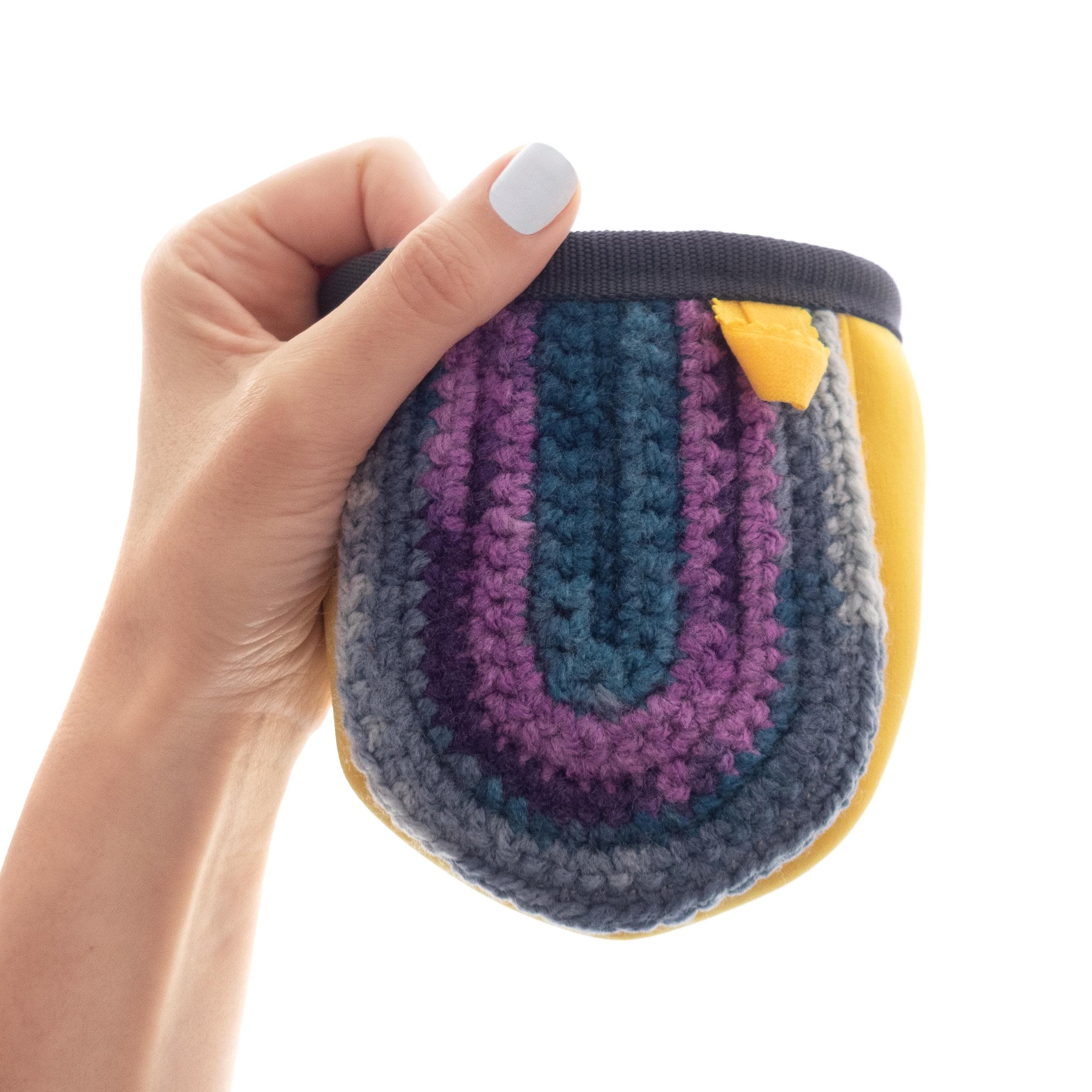 Kids Climbing Chalk Bag for climb gym or rock climbing walls. We handmade it as an equipment for junior girls or boys. This bag can be attached to harness or worn with the webbing belt when the little ones are bouldering or climbing too. The size of the chalk bag is smaller than the chalk pouches for the adults, but it is with the same functionality. We handmade sew it of neoprene fabric and knitted its front part of yarn. Make your kid happy, having one of a kind climbing accessory.