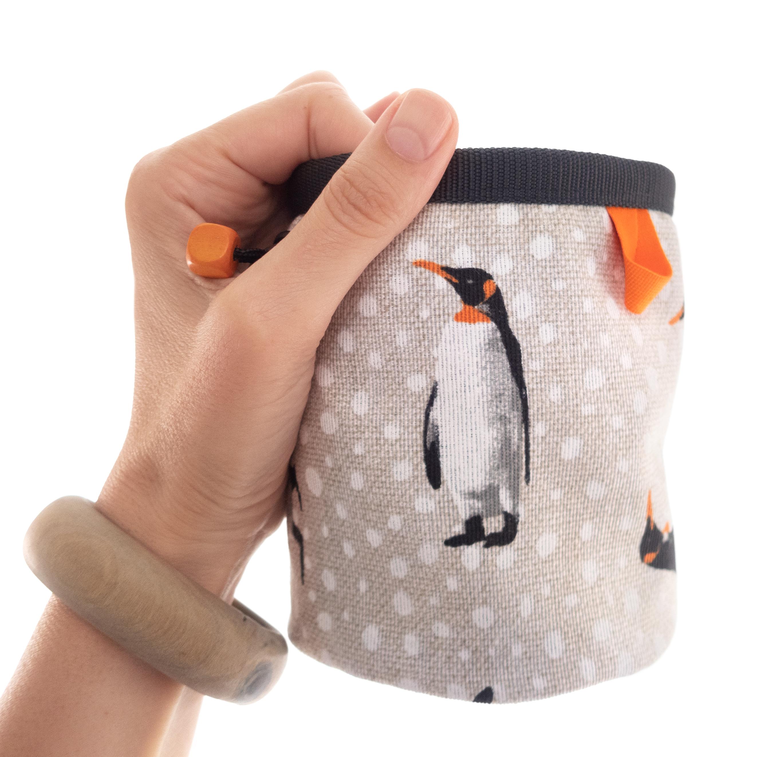 Unique and handmade animals Childrens Climbing Chalk Bag, designed for the little kids hands. This funny chalk pouch is the rock climb equipment that will make your kids happy. It is in childish style, colorful and stylish, and is sewn of fabric with penguins! Durable, with the classical but economical cylinder shape. One of a kind.