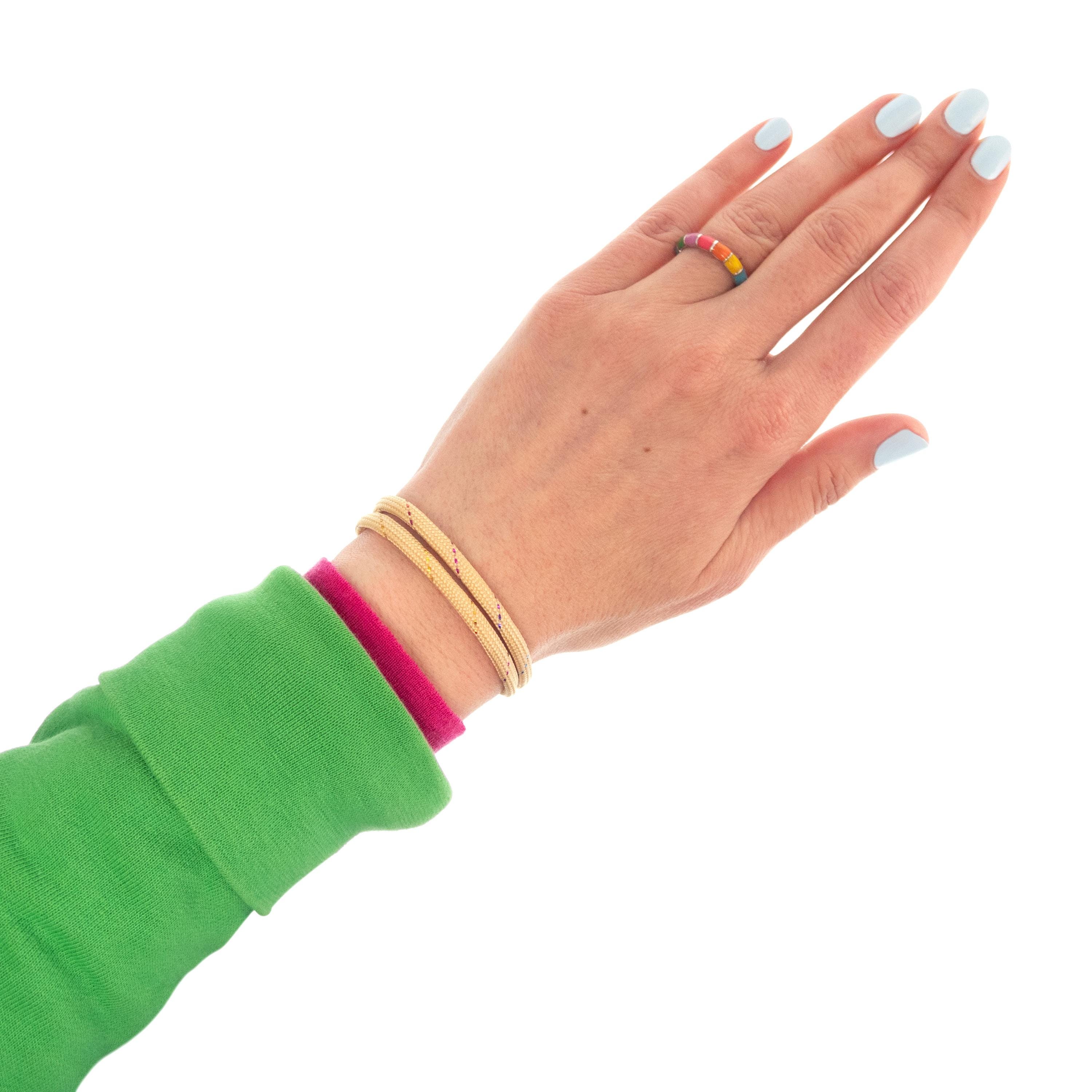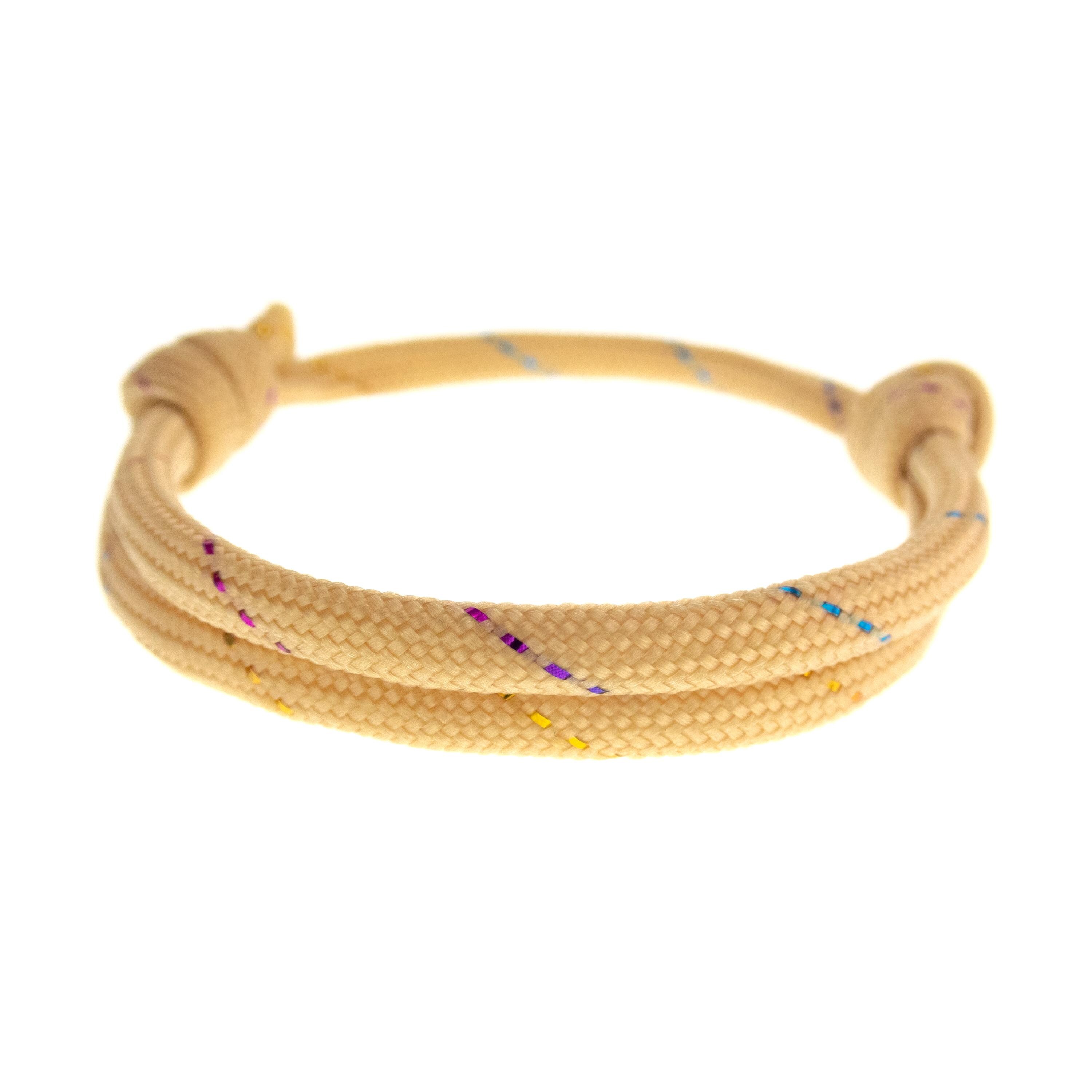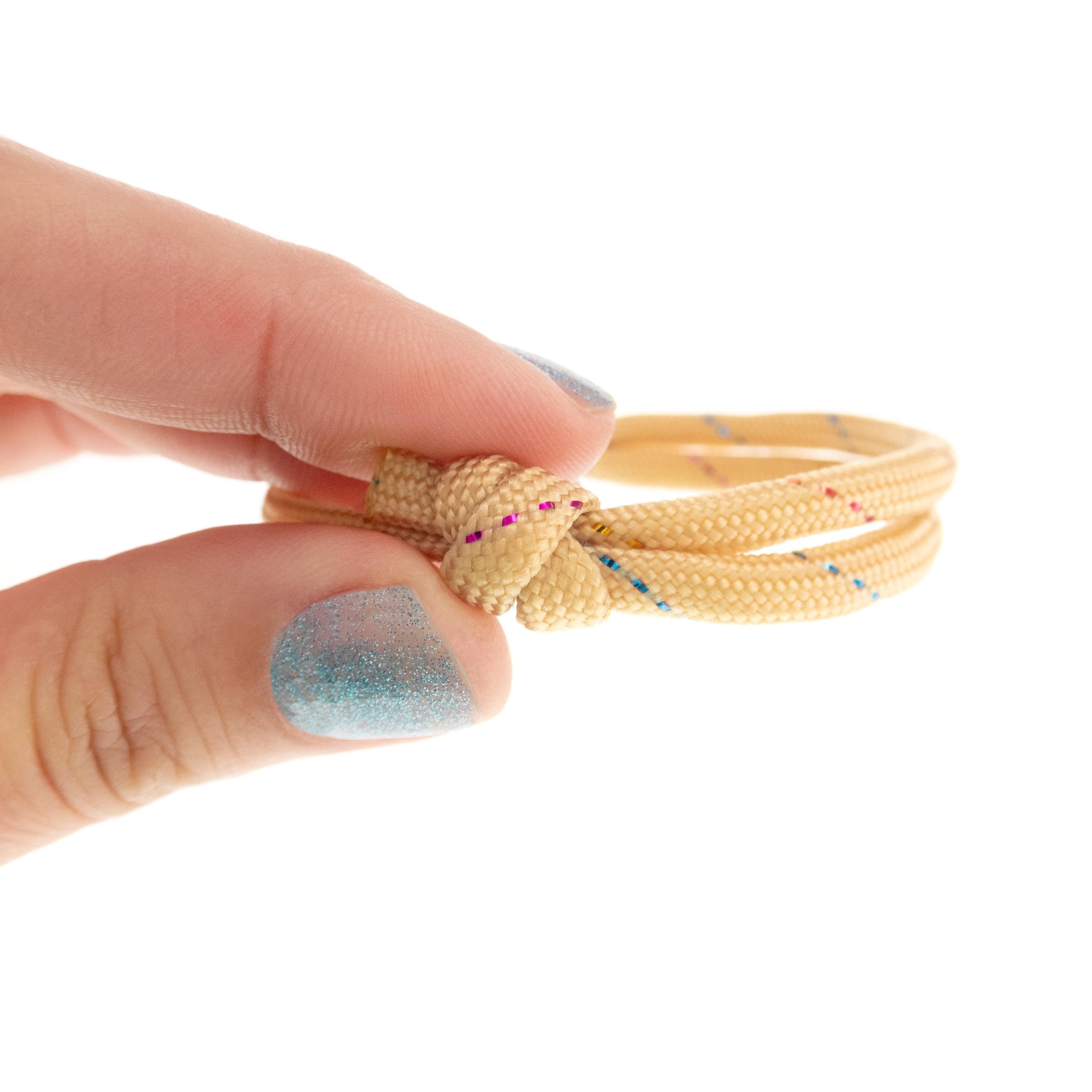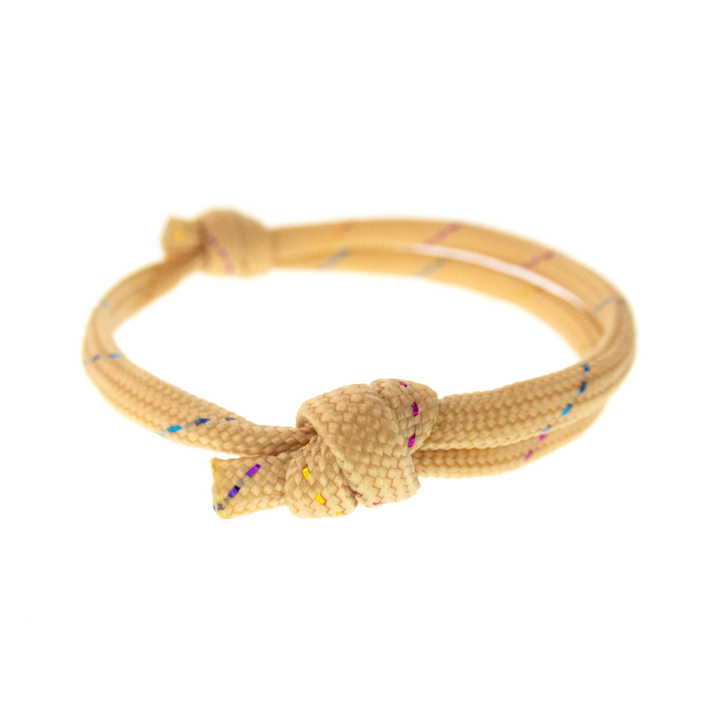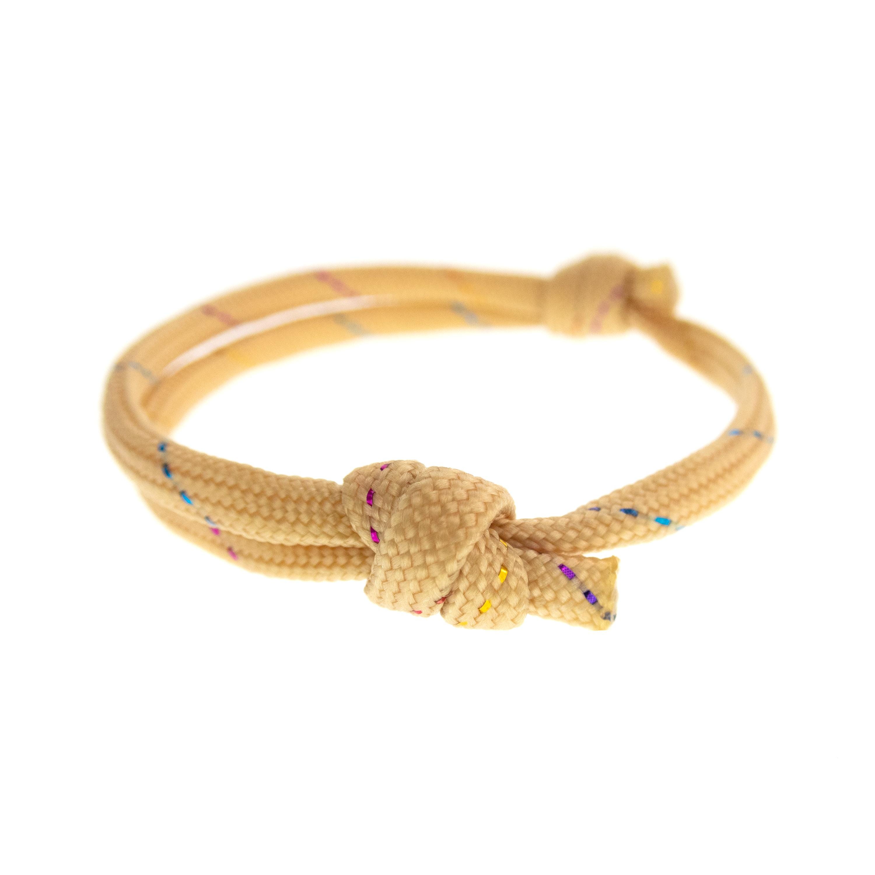 Are you looking for unique and Cool Friendship Bracelet for guys and girls? This bracelet of paracord with adjustable knots is the bracelet that will be highly appreciated. It is unisex and one size fits all. Slide the knots on the string, and you will adjust the diameter of the bracelet. It is nice gift idea for your best friend, male and female, and for couples present for him and her, and is way to strengthen your bond and show your support for each other. It is a thoughtful and personalized gift that your friends will love too. Nadamlada designed this bracelet of beige paracord rope with glittering thread. It is simple, but with coolest design. Wearing this cool friendship bracelet will complement your outfit and add a unique touch to your style.